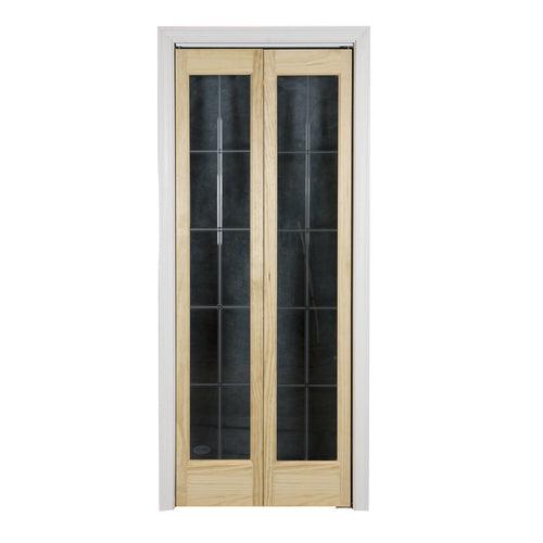 Pinecroft Optique 32-in x 80-in Unfinished Pine Wood 2-Panel Square Patterned Glass Unfinished Pine Wood Bifold Door (Hardware Included)