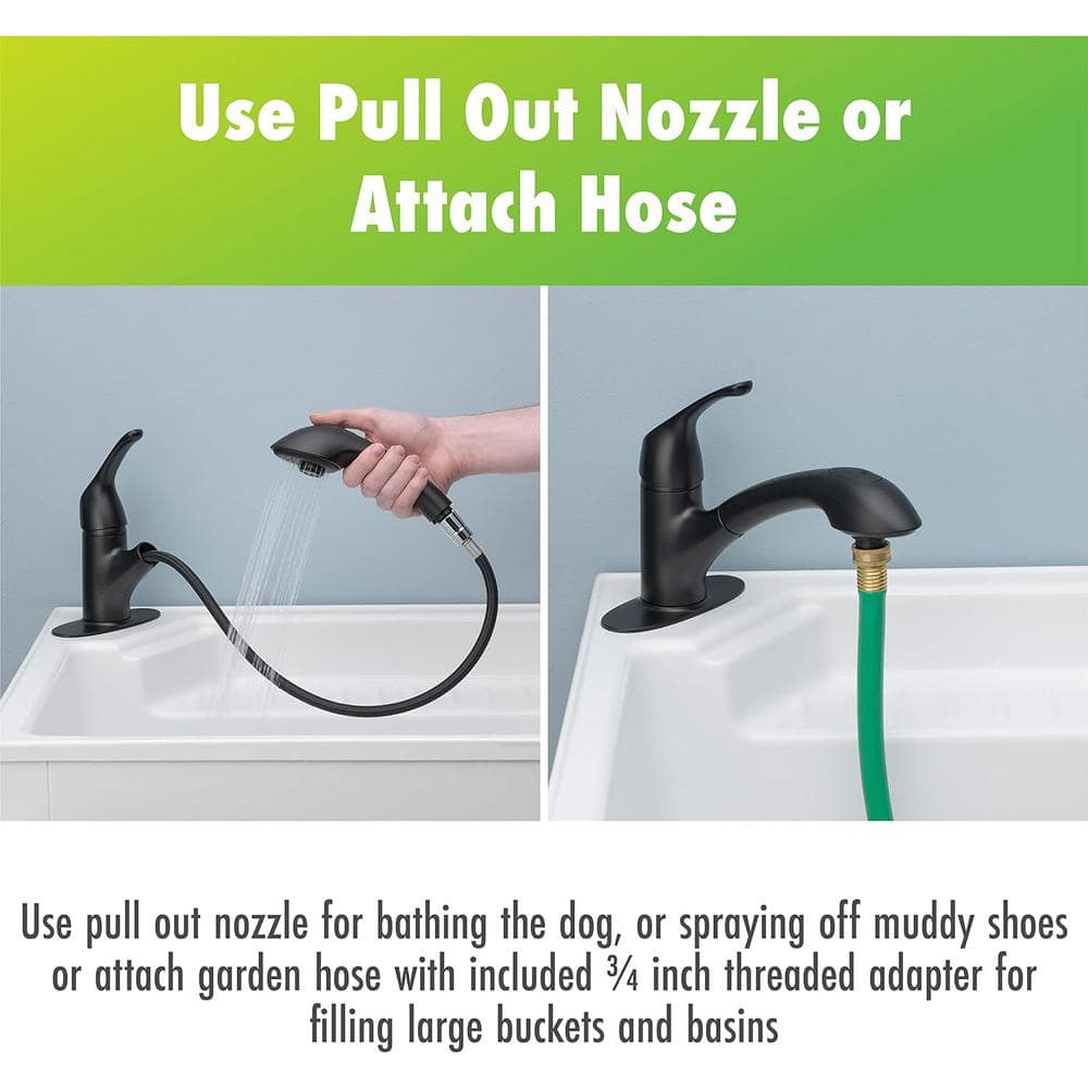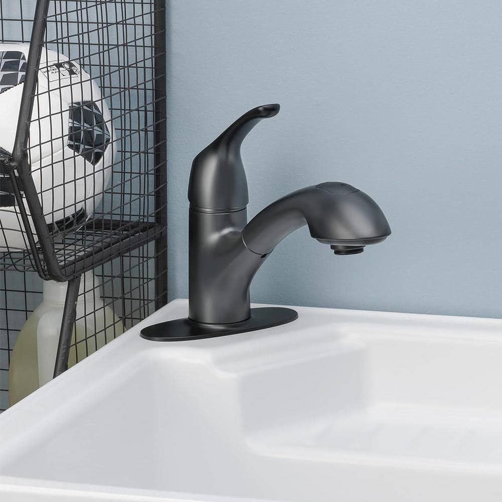 Lukvuzo Matte Black Single Handle Pull-Out Utility Faucet with Deckplate