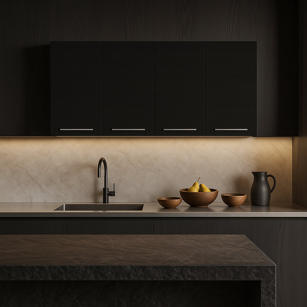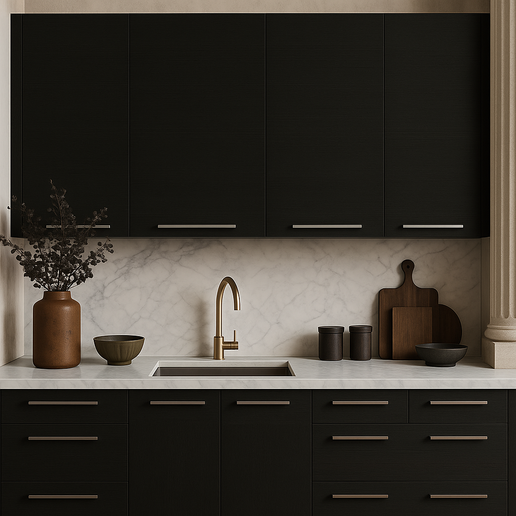 This black wood wall kitchen cabinet is a masterpiece of modern design, blending functionality with sleek aesthetics. Its dark finish and clean lines create a sophisticated look that enhances any kitchen space. The soft close doors and spacious interior shelves make it a practical choice for organizing your essentials. Pair it with stainless steel appliances for a cohesive and stylish kitchen setup.