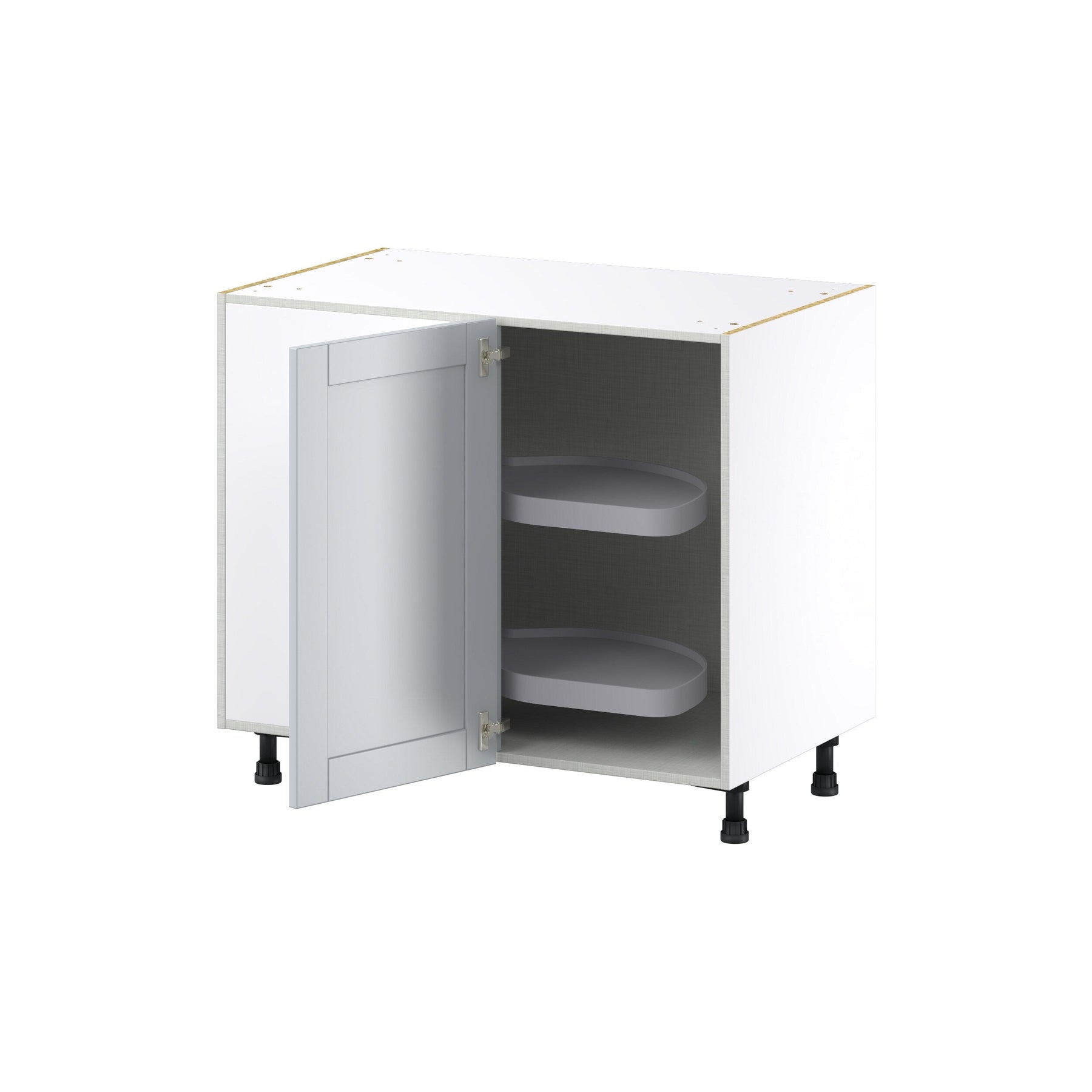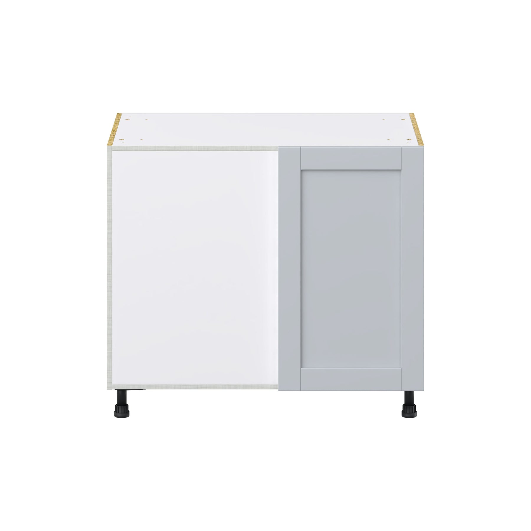 Elevate your kitchen storage with the Hugo&Borg Charlesberg Blind Corner Base Cabinet. Featuring a sleek flat panel shaker design in a sophisticated light gray finish, this cabinet provides premium functionality with its full-access box construction that maximizes your storage by 20%. Experience soft-close doors and an effortless style that transform your kitchen into a modern masterpiece.