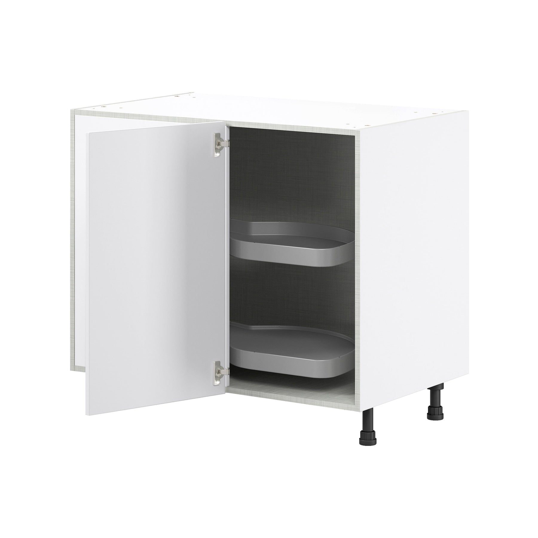 A: No, the Jolie cabinet features a left-hand door swing specifically suited for optimal blind corner use.