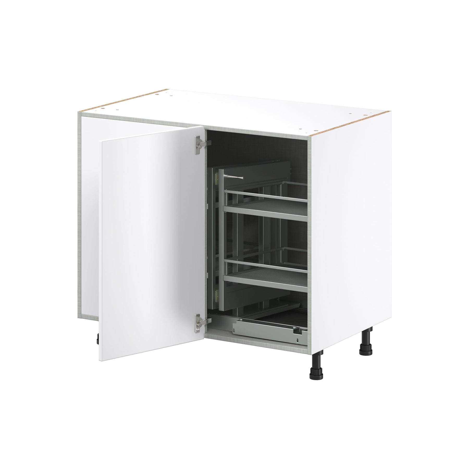 • Hardware: Comes complete with Magick corner pull-out hardware, including smooth-operating metallic gray trays.