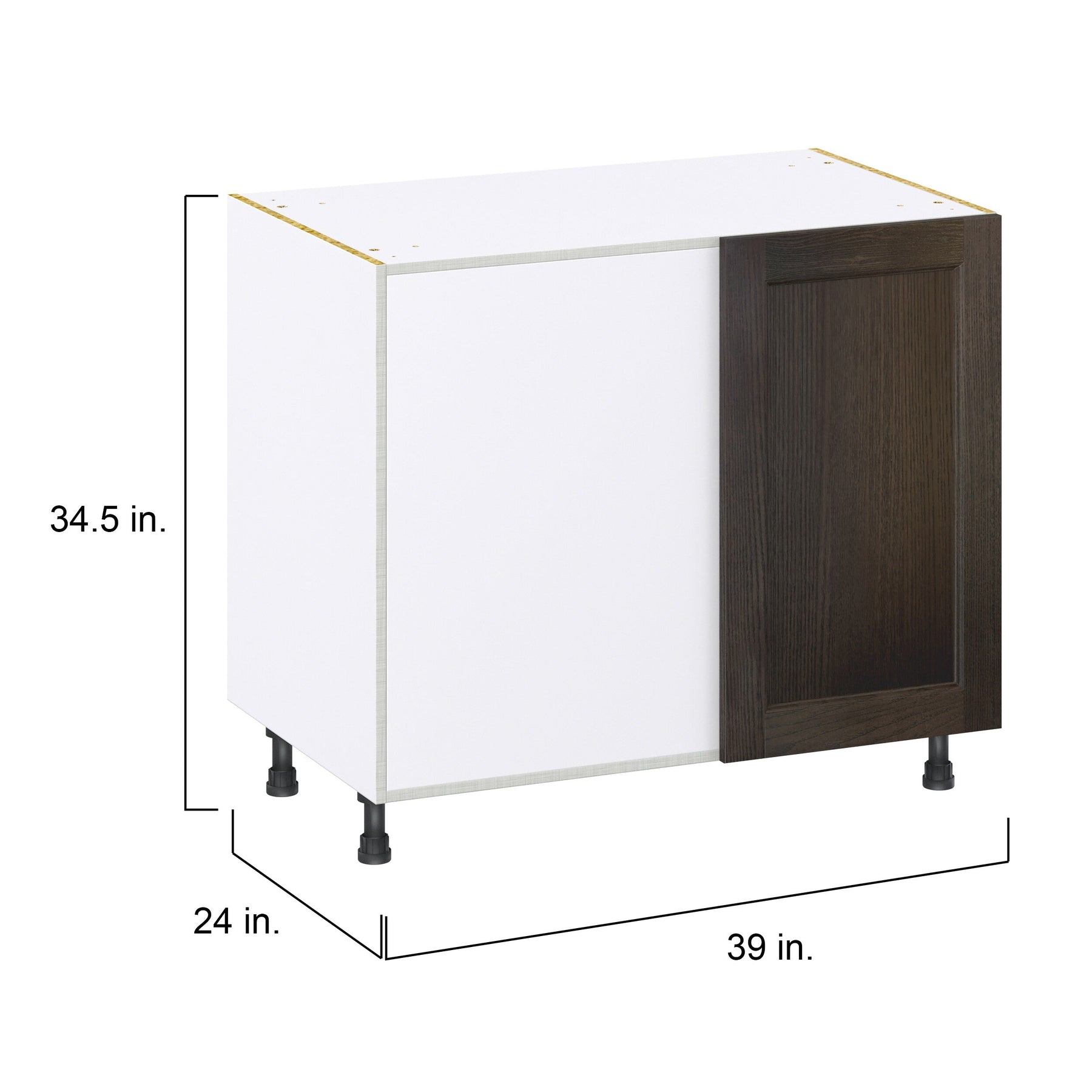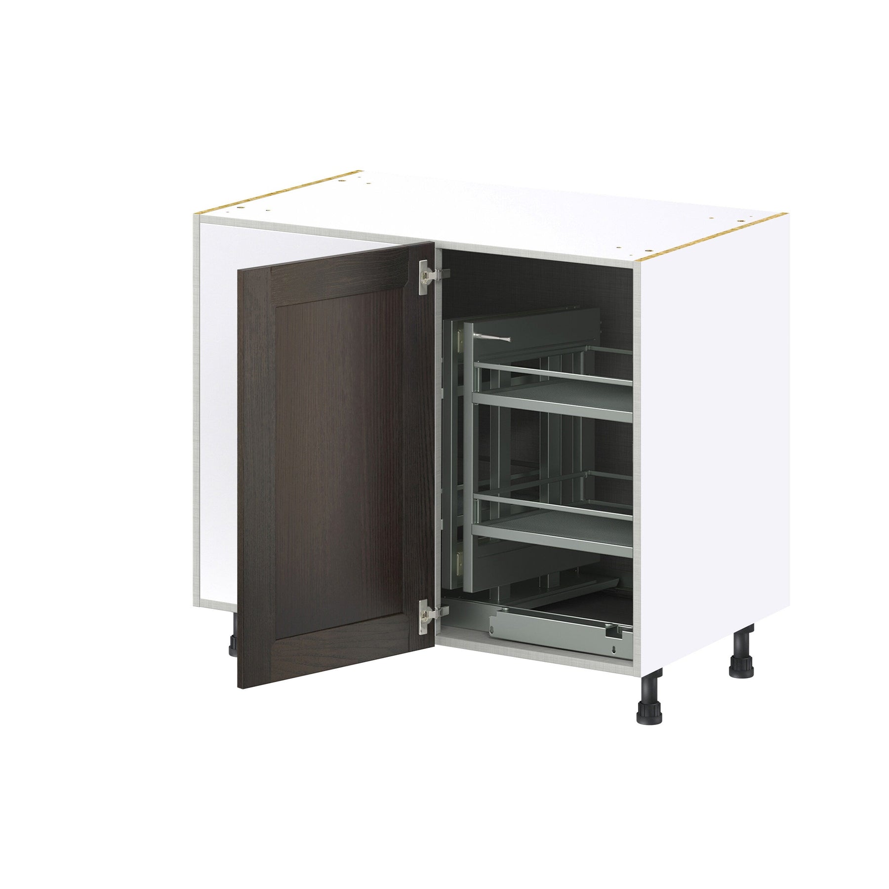 Optimize your kitchen storage with the Hugo&Borg Montclaire Blind Corner Base Cabinet. This fully assembled cabinet features a recessed panel, Shaker style in a dark wood finish, providing both aesthetic appeal and functional efficiency with its smart pull-out hardware. Enjoy the convenience of soft close hinges and a versatile interior, all contributing to a seamless kitchen design experience.