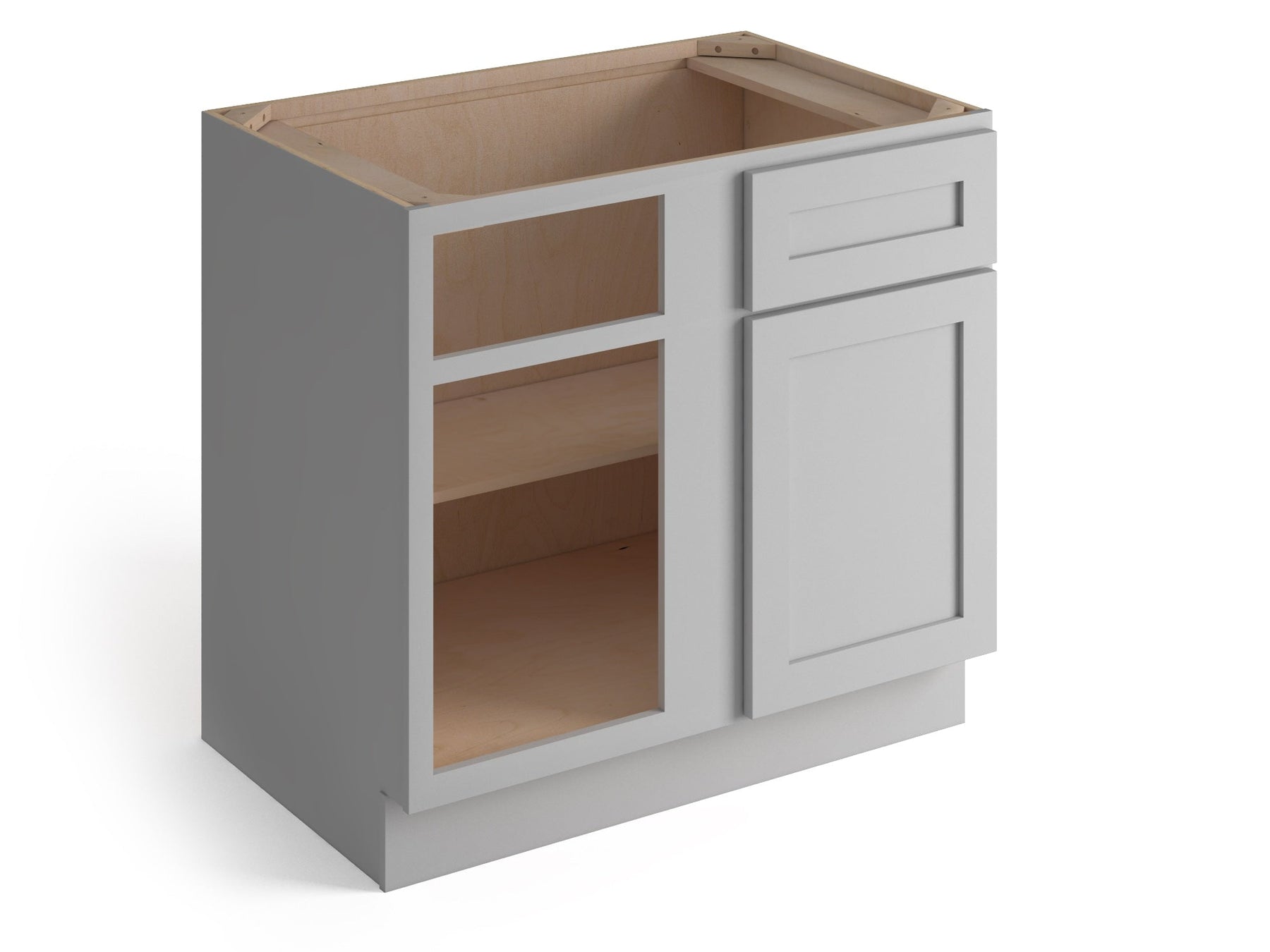 Valleywood Cabinetry Proper Gray 36-in W x 34.5-in H x 24-in D Proper Gray Birch Blind 1-Drawer Corner Base Ready To Assemble Plywood Cabinet (Flat Panel Shaker Style)