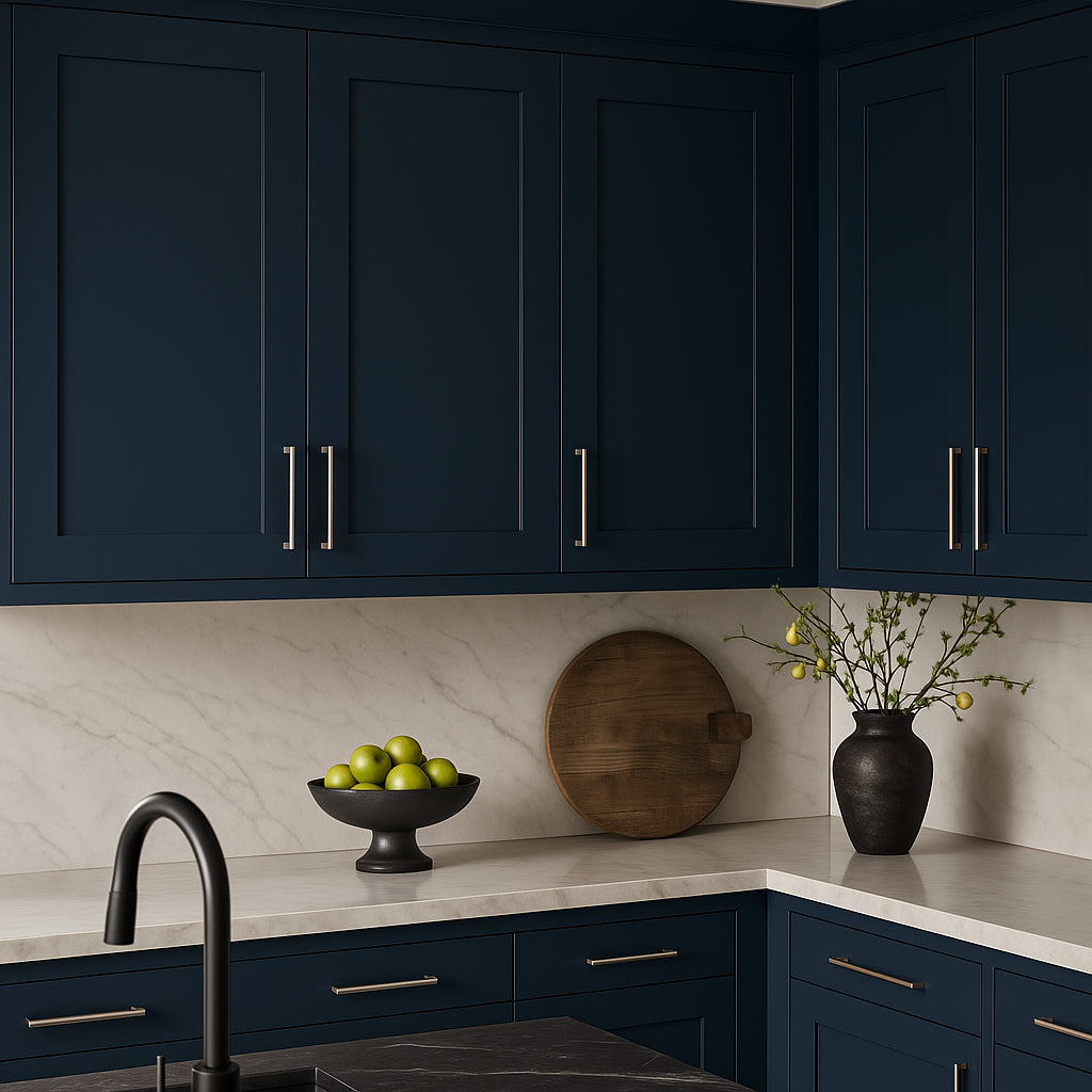 The Hampton Bay Ink Blue Shaker Wall Kitchen Cabinet combines modern design with durable plywood construction. Featuring soft-close doors and adjustable shelves, this cabinet offers both style and functionality for your kitchen.