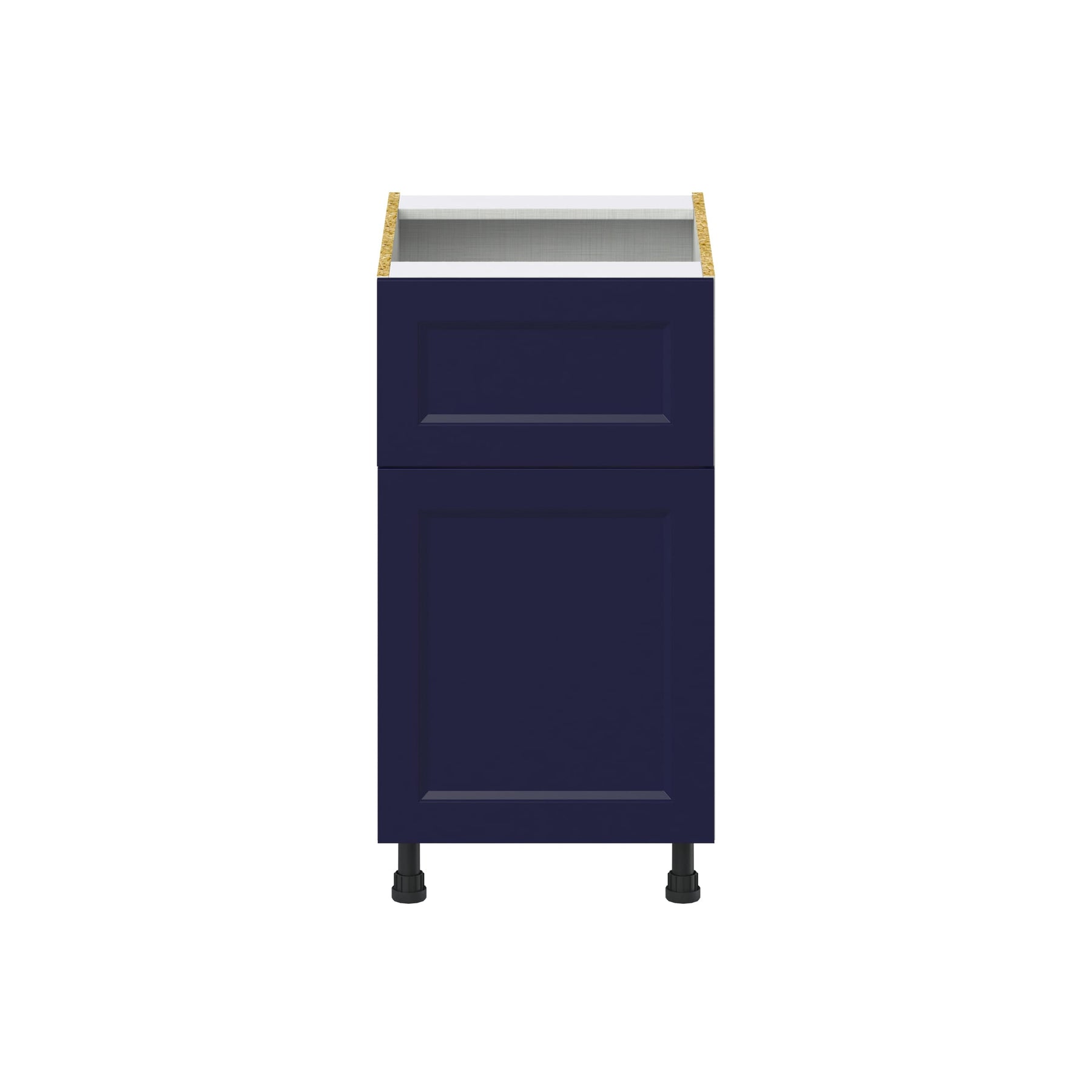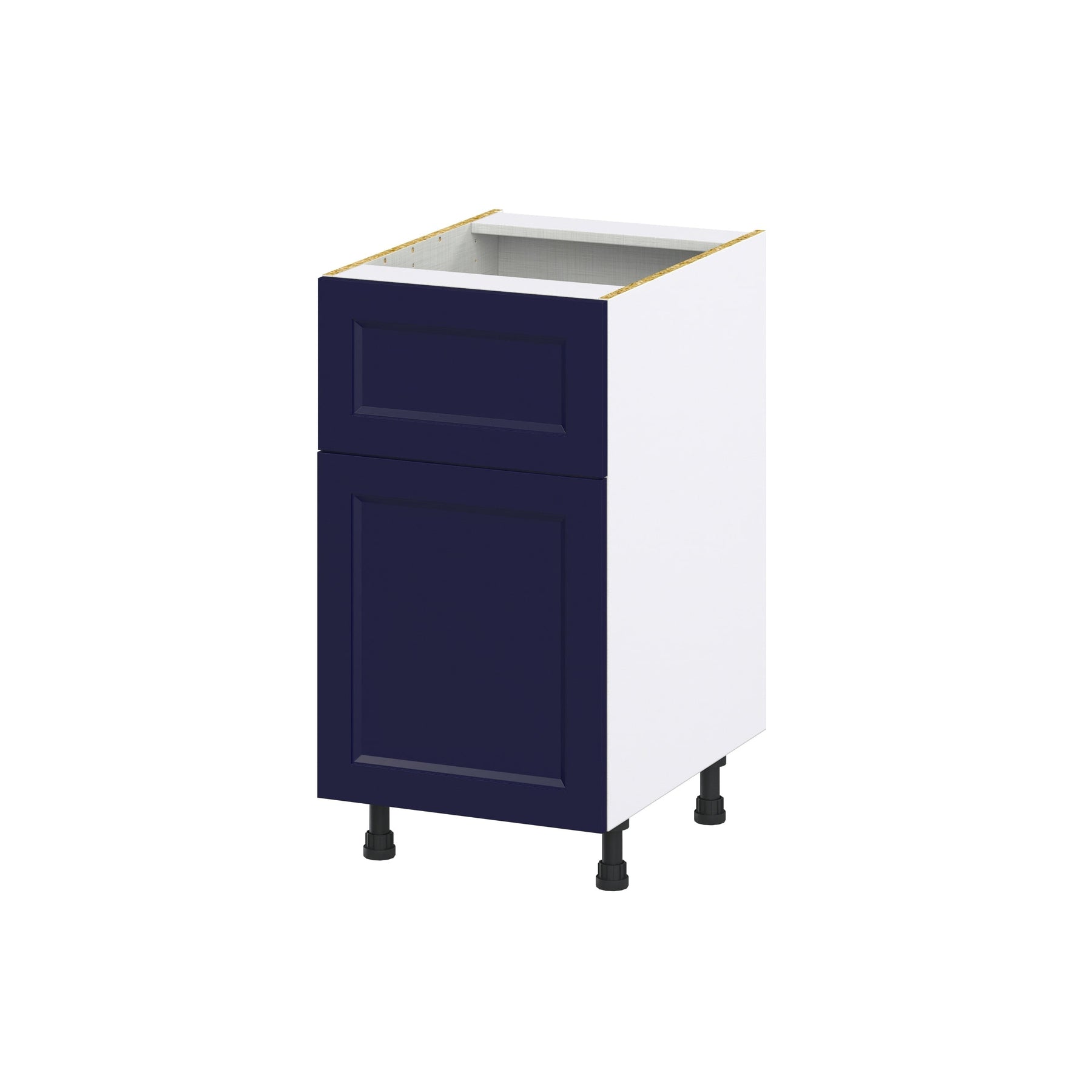 Enhance your space with the Hugo&Borg Lorette Navy Blue Shaker-Style Base Cabinet, designed for both functionality and style. Its premium full-access construction delivers 20% more storage, while the soft-close doors and drawers ensure a smooth, quiet experience. Perfect for remodeling projects, this cabinet comes fully assembled with a silky-smooth, moisture-resistant finish.