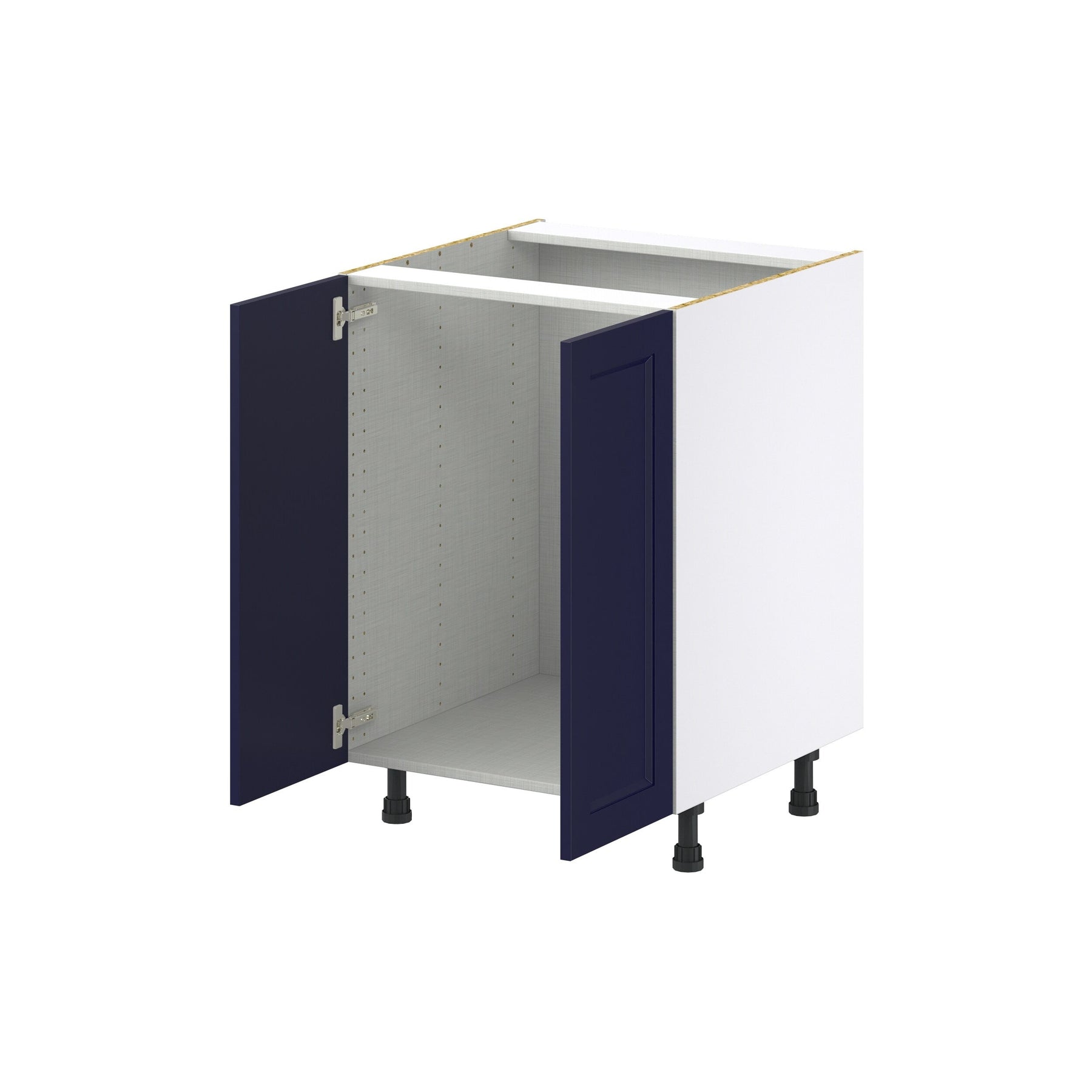 Transform your kitchen or bathroom with the Hugo&Borg Lorette 24-inch Navy Blue Base Cabinet. This fully assembled unit features a Shaker-style recessed panel design, adding a touch of transitional elegance. The soft-close doors and moisture-resistant finish ensure durability and sophistication for years to come.