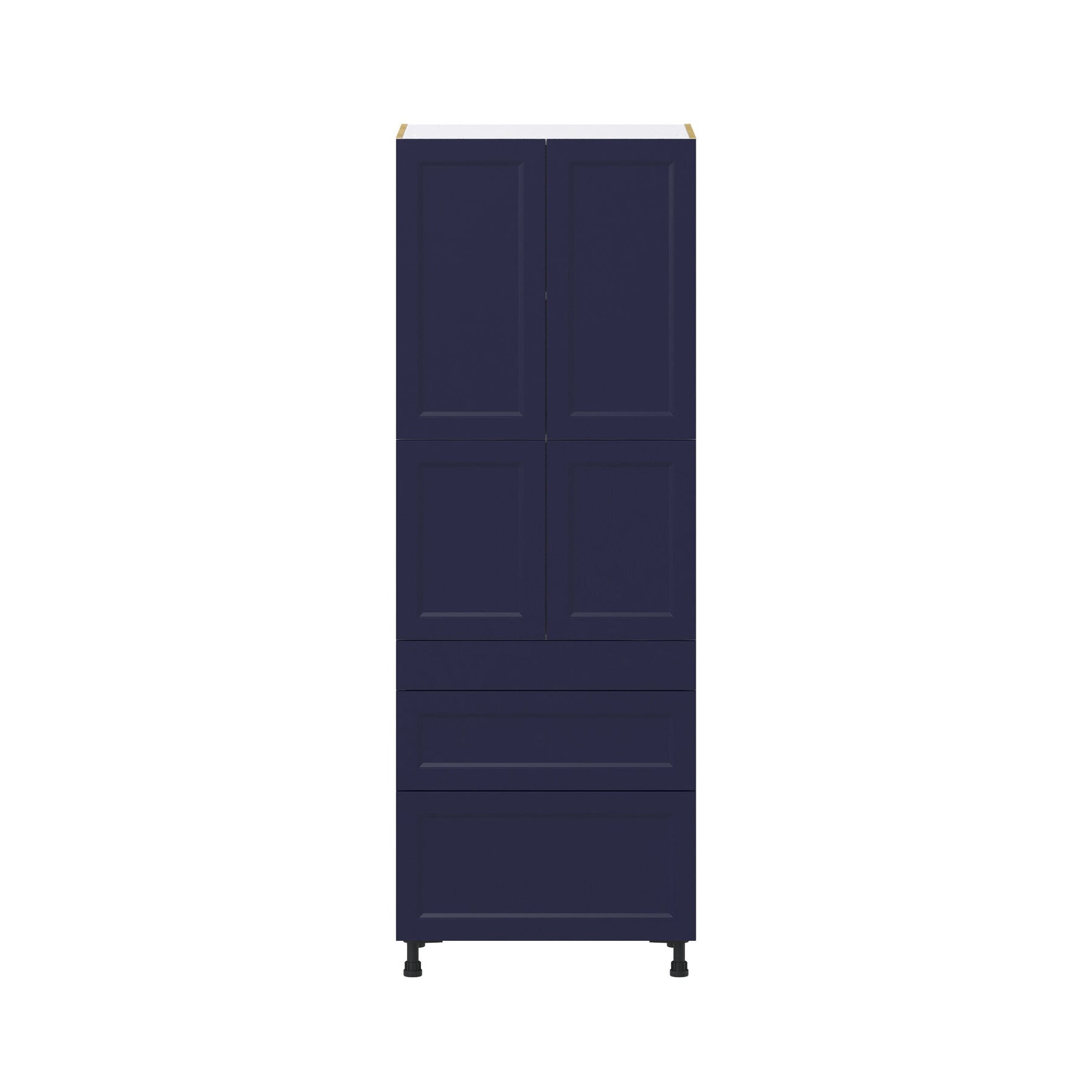 Hugo&Borg Lorette 30-in W x 84.5-in H x 24-in D Navy Blue 3-Drawers Pantry Fully Assembled Cabinet (Recessed Panel Shaker Style)