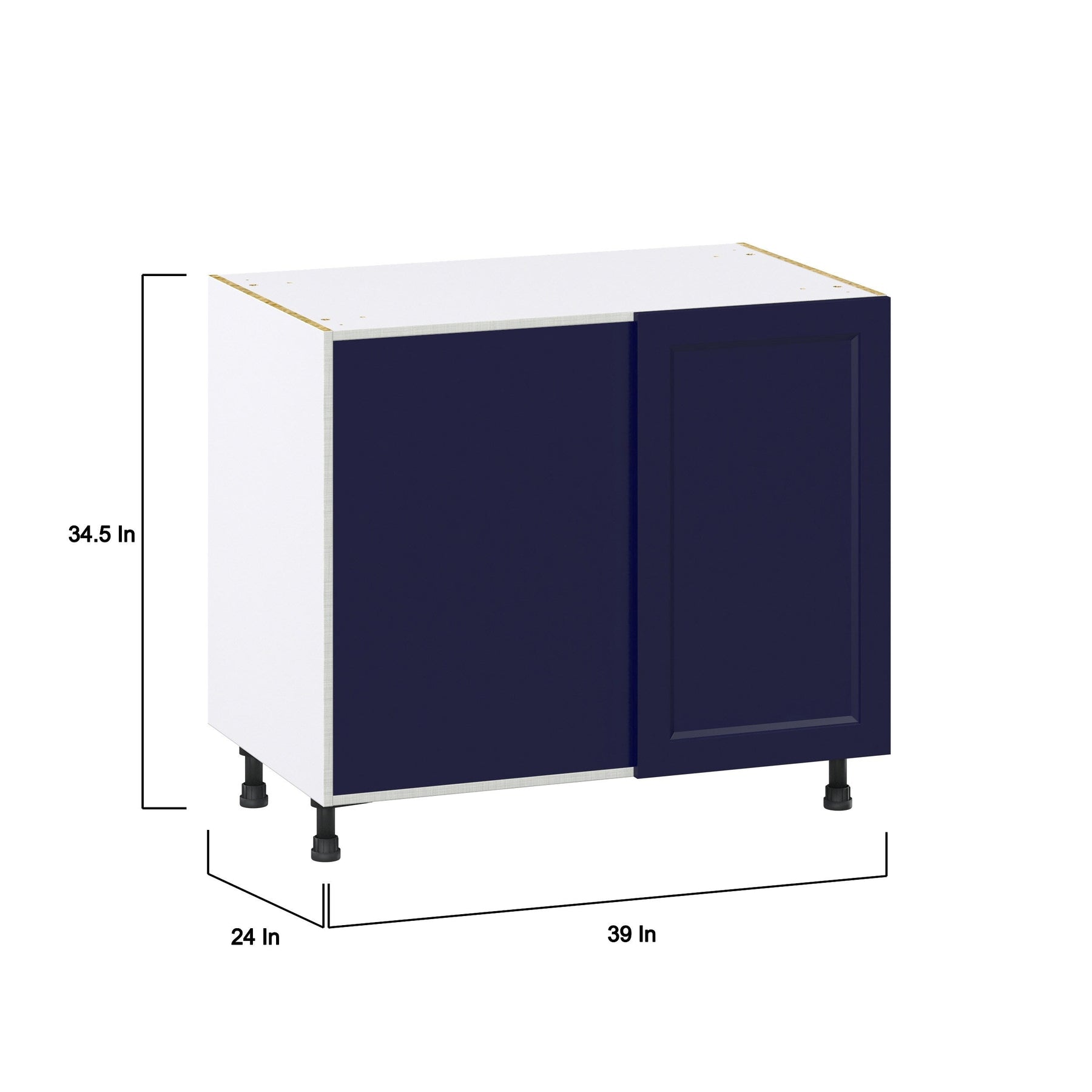 Hugo&Borg Lorette 39-in W x 34.5-in H x 24-in D Navy Blue Blind Corner Base Fully Assembled Cabinet (Recessed Panel Shaker Style)