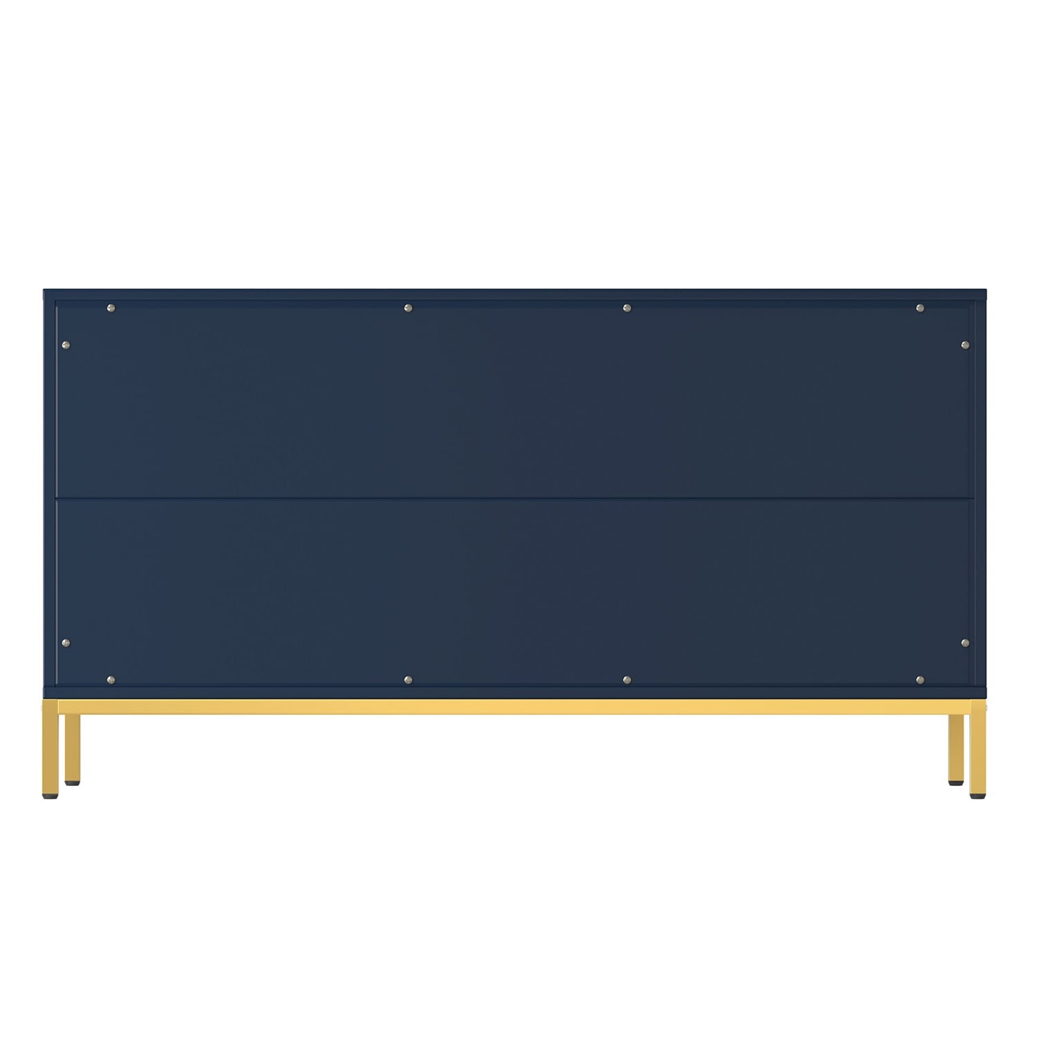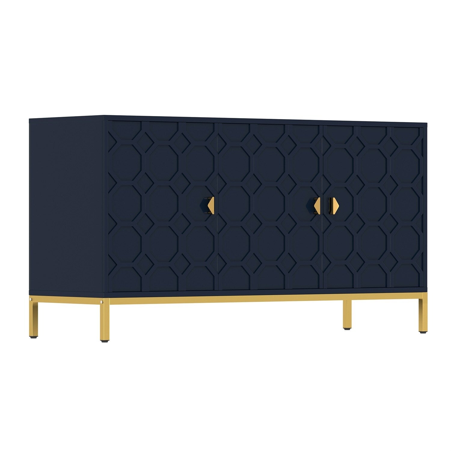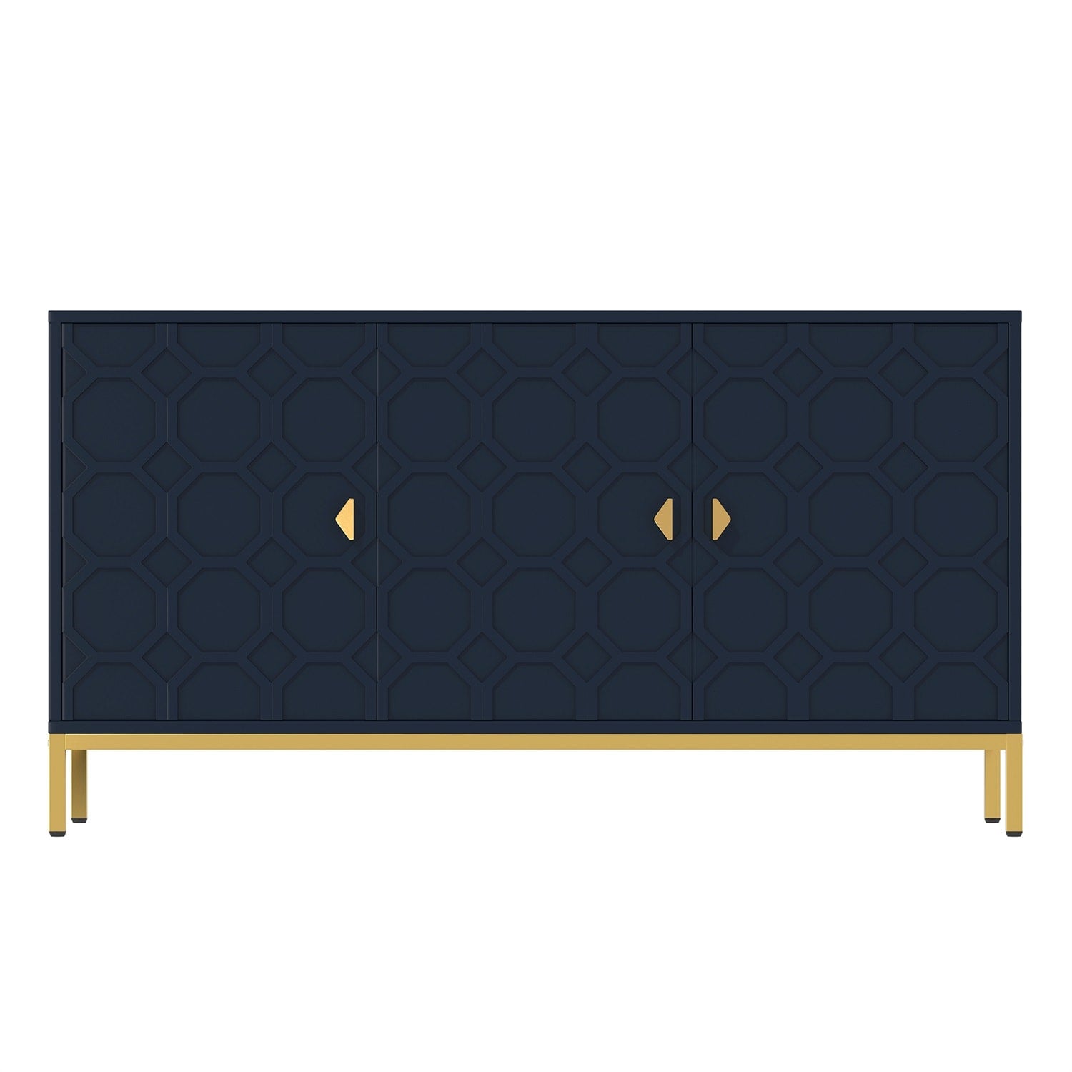 Elevate your storage solutions with the Mondawe 3-Door Accent Cabinet, finished in a captivating blue. Its sleek, modern design with golden square metal legs offers both functionality and a touch of elegance, providing ample space for organization while enhancing any room decor.
