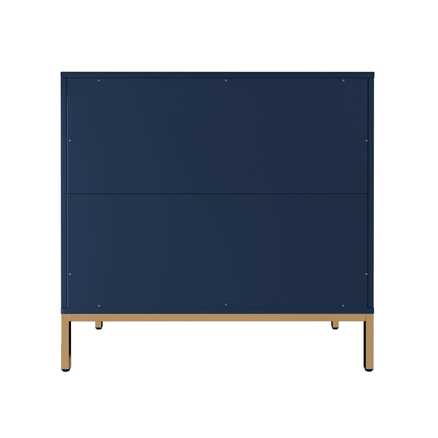The Mondawe 31.5" Blue 3-Drawer Cabinet redefines elegance in home storage solutions. The vibrant blue hue, complemented by tapered gold-colored legs, introduces a dash of vivacious luxury to any room. Its honeycomb-patterned fronts transform mere utility into artistry. Position it in a living room or office to not only declutter but also create a focal point that exudes modern sophistication. Essential for those who seek to infuse their spaces with beauty and order, this cabinet is the epitome of chic, functional decor.