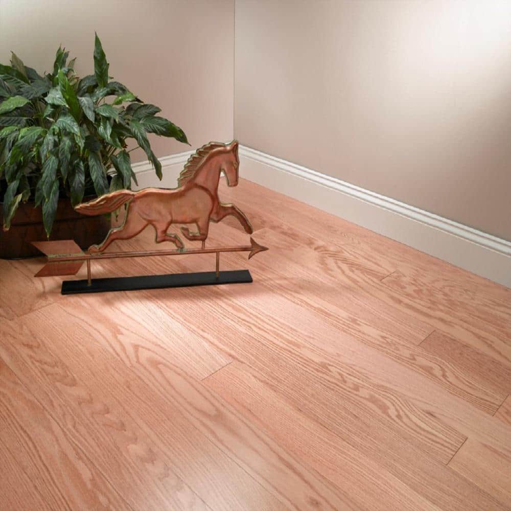 This Natural Red Oak Hardwood Flooring transforms any room into a sanctuary of warmth and elegance with its exquisite grains and subtly rich hues. It's medium gloss finish catches the eye, inviting moments of peaceful reflection or lively gatherings. Consider pairing it with soft linen furnishings and open-concept designs to create a seamless flow of air and light. Such flooring is more than a foundation—it's the heartbeat of a refined living space.
