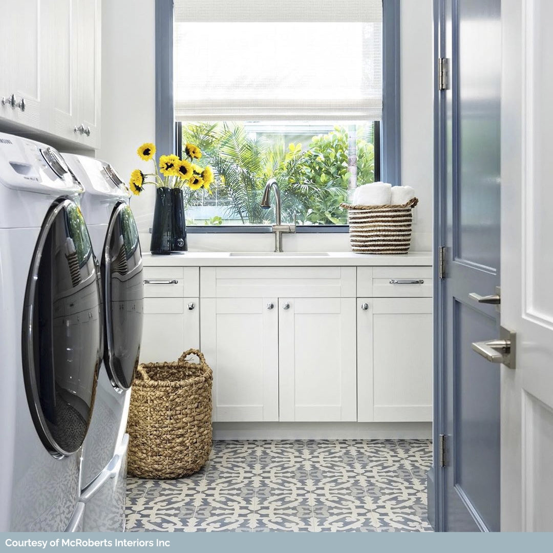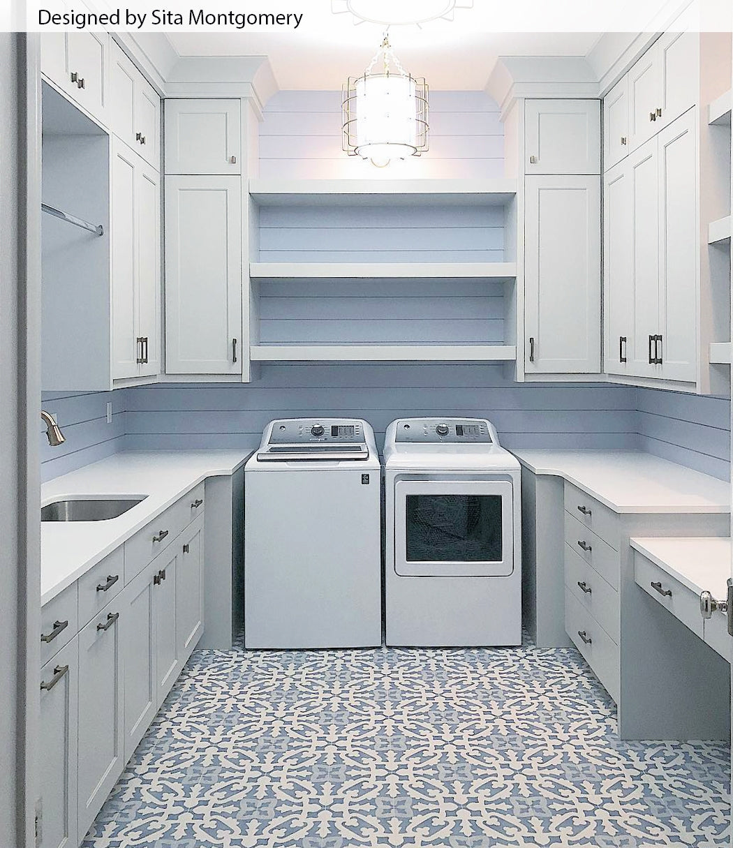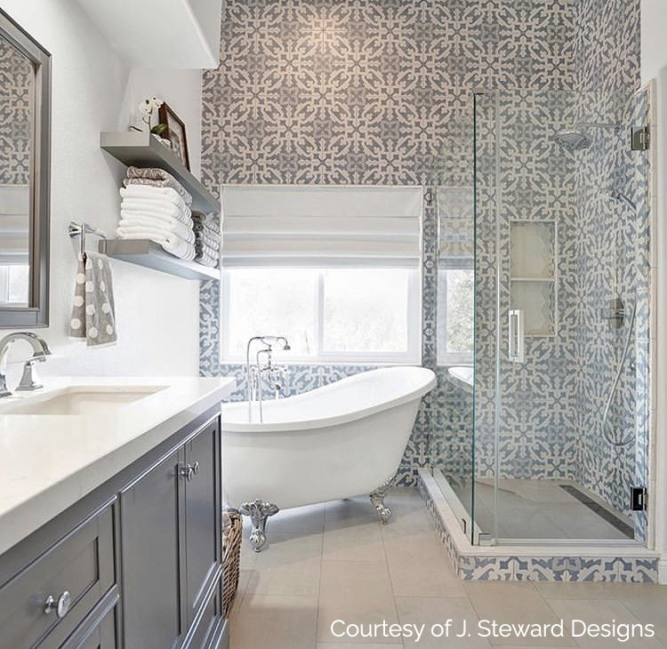 • Encaustic Look: Timeless pattern in blue, gray, and white for statement floors and walls
