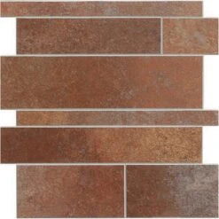 • Design Impact: Multi-size linear mosaic creates a modern, brickwork look in rich terra hues