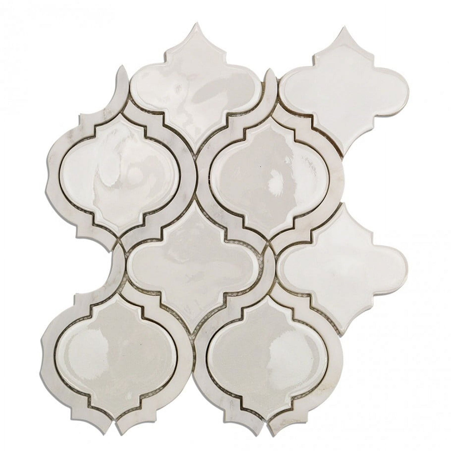 Glacier White Arabesque Glazed Ceramic Mosaic Tile Sheet