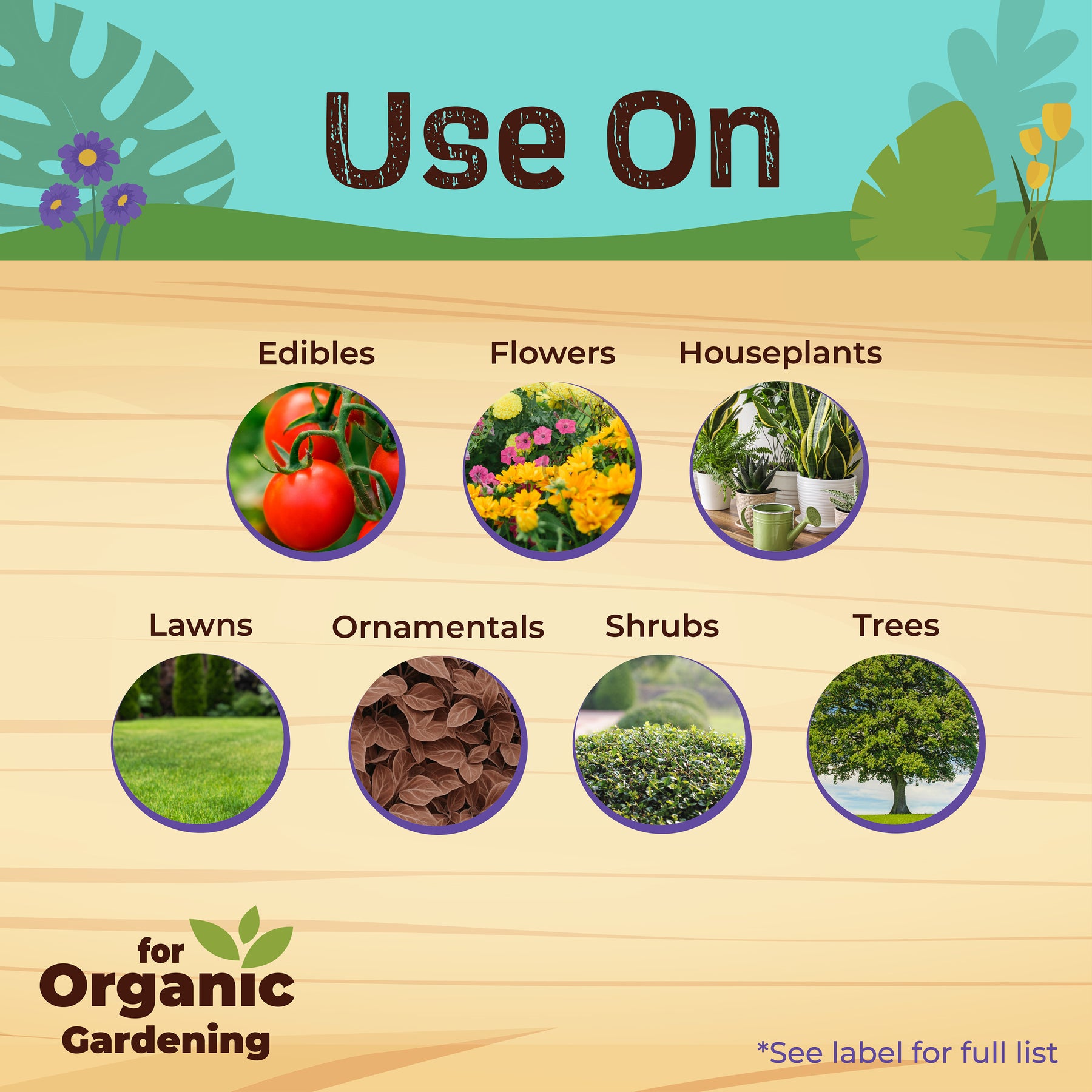 • Organic Gardening Approved: Suitable for use on fruits, vegetables, herbs, flowers, lawns, shrubs, and trees