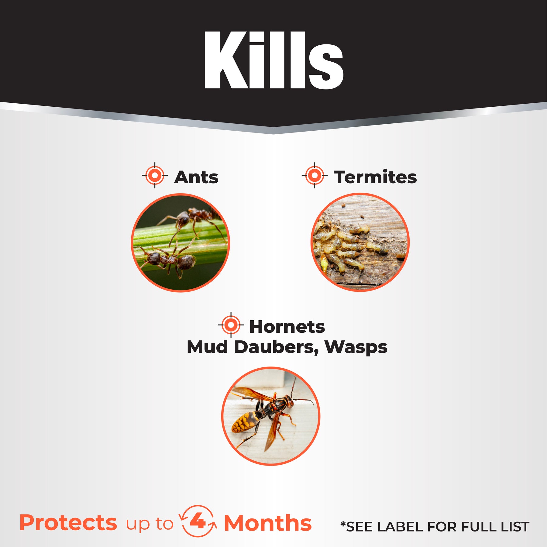 Ready-to-use, water-based pyrethroid insecticide designed to kill termites and carpenter ants on contact and provide residual protection. Suitable for indoor and outdoor applications, this formula keeps killing for up to 4 months.