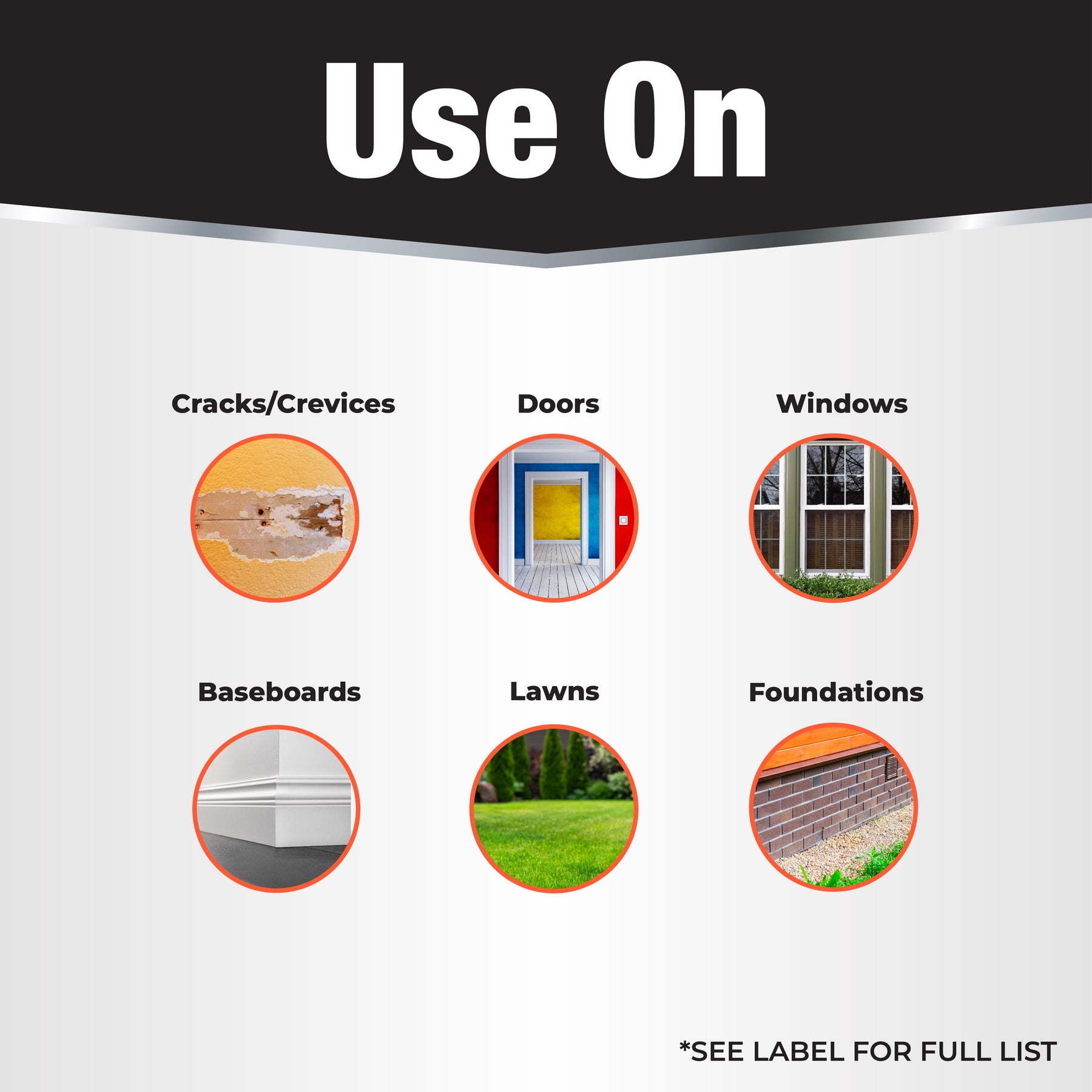 A: Use indoors and outdoors on cracks, crevices, baseboards, around doors and windows, lawns, and foundations.