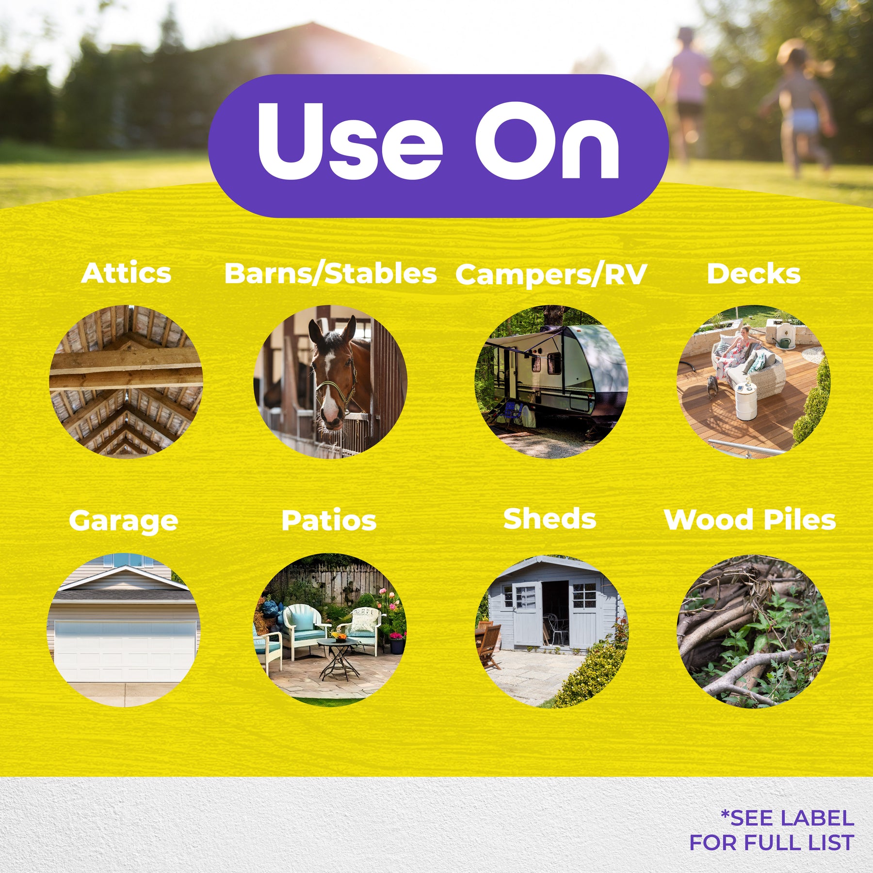 Use locations Attics, barns/stables, campers/RV, decks, garage, patios, sheds, wood piles