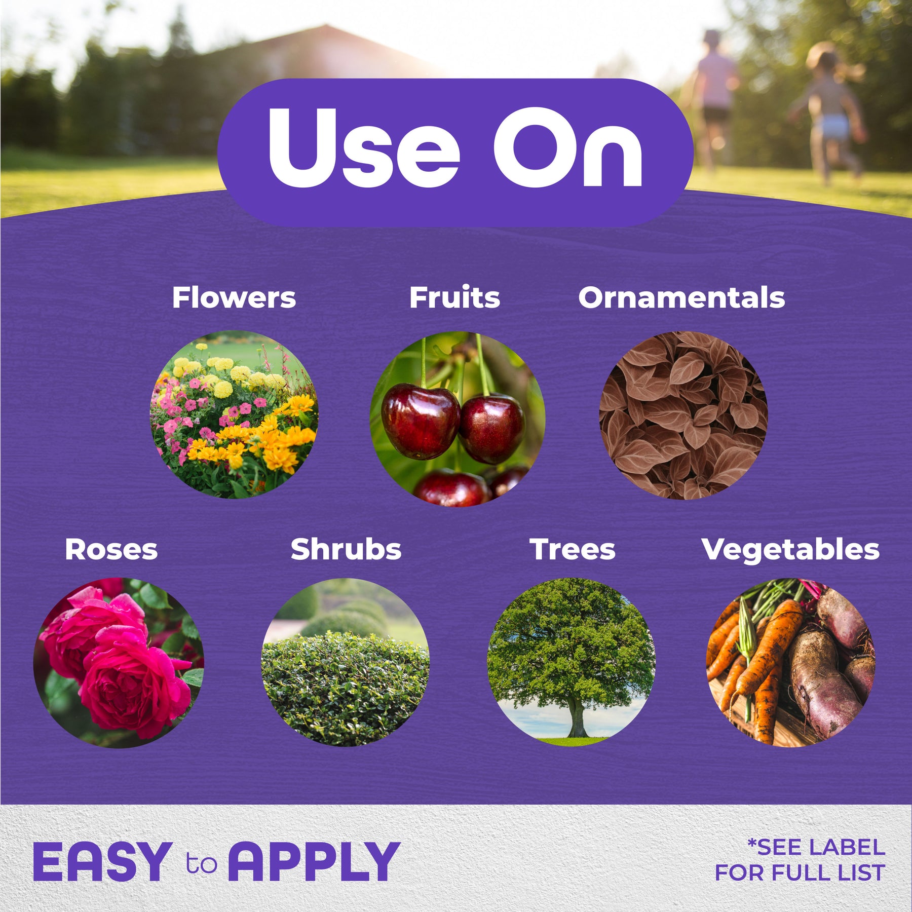• Broad Use Sites: Safe for use on fruits, vegetables, roses, trees, shrubs, flowers, and ornamentals as labeled.
