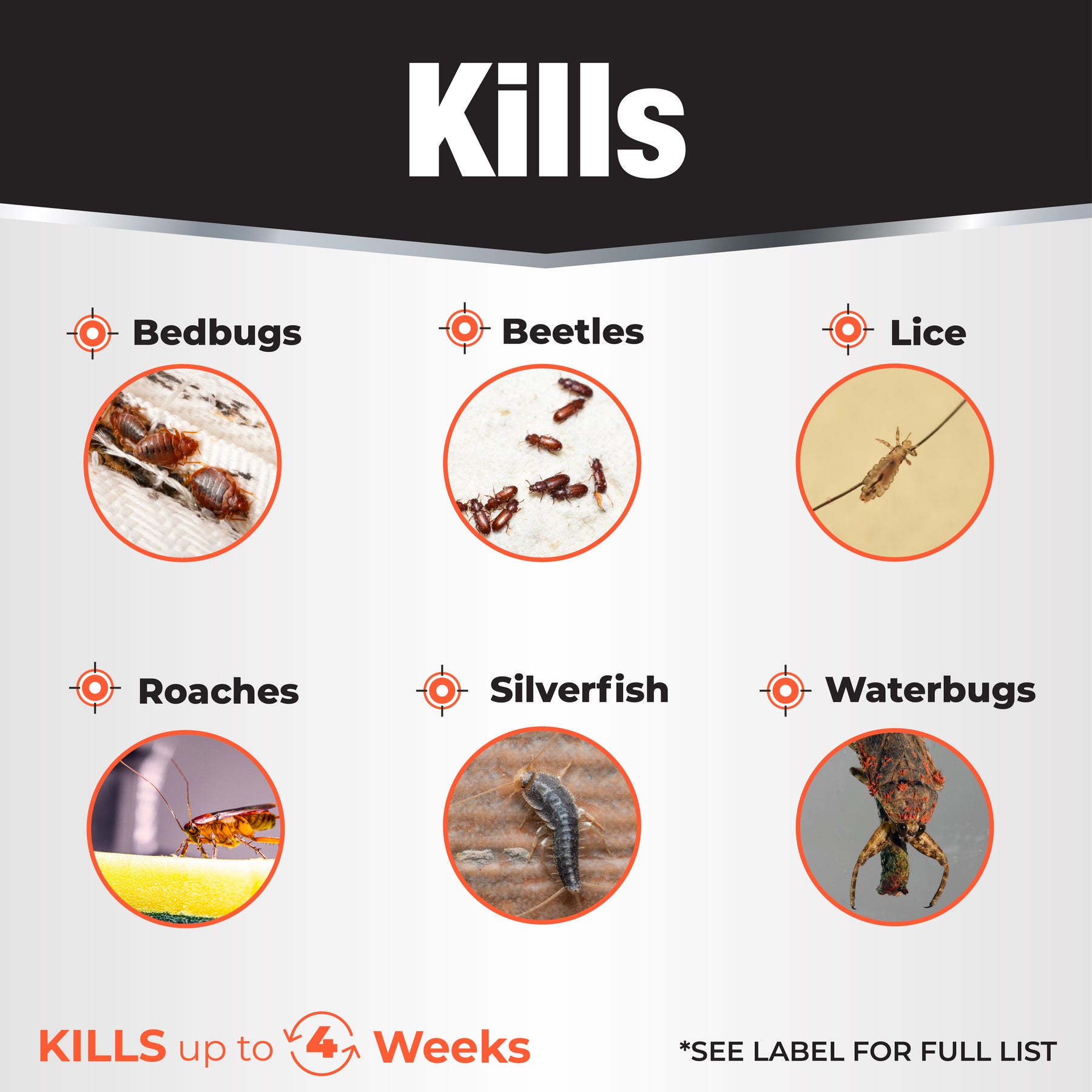 • Contact Kill: Quickly eliminates bedbugs and many listed household insects