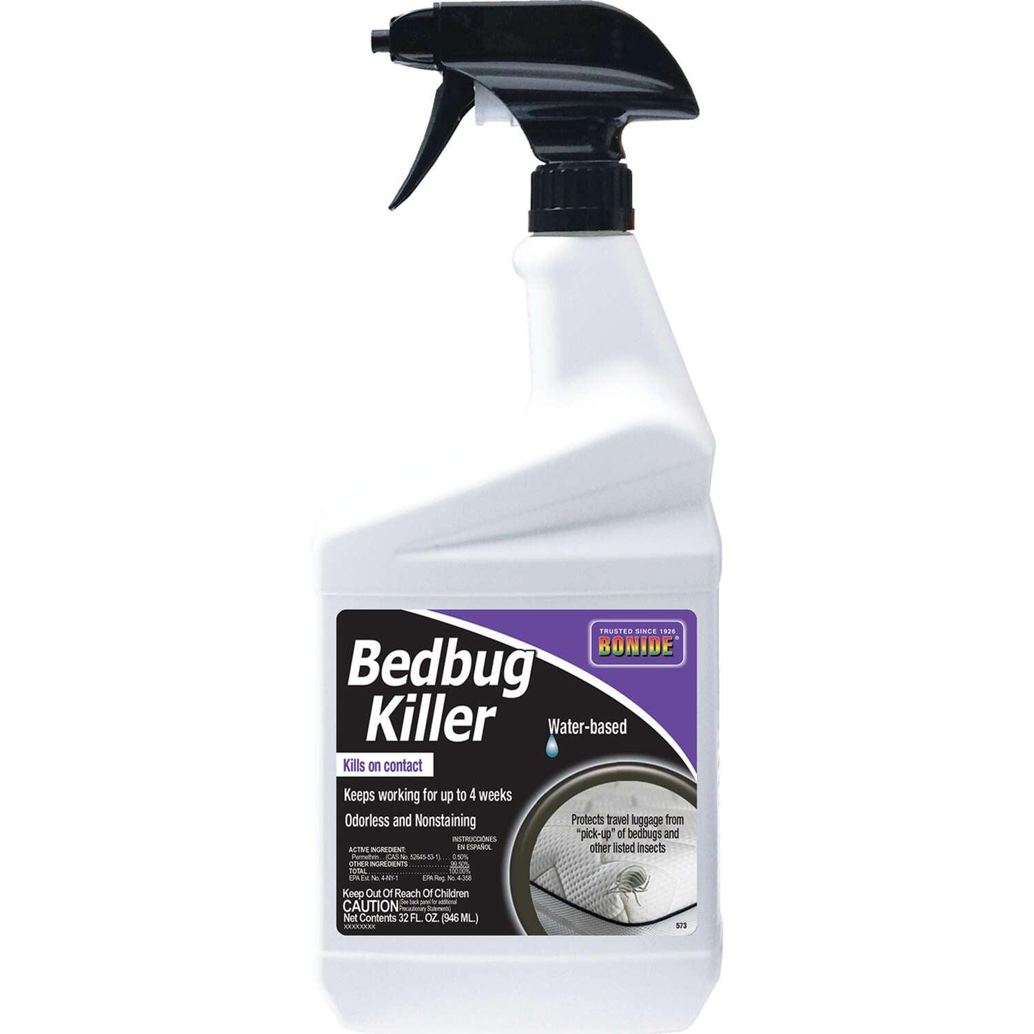 Bonide’s water-based, odorless Bedbug Killer delivers contact kill and residual protection for up to 4 weeks. Ready-to-use for mattresses, bed frames, closets, baseboards, carpets, and more—ideal for travelers and home use. Non-staining formula helps protect luggage and surfaces from bedbugs and other listed household pests.