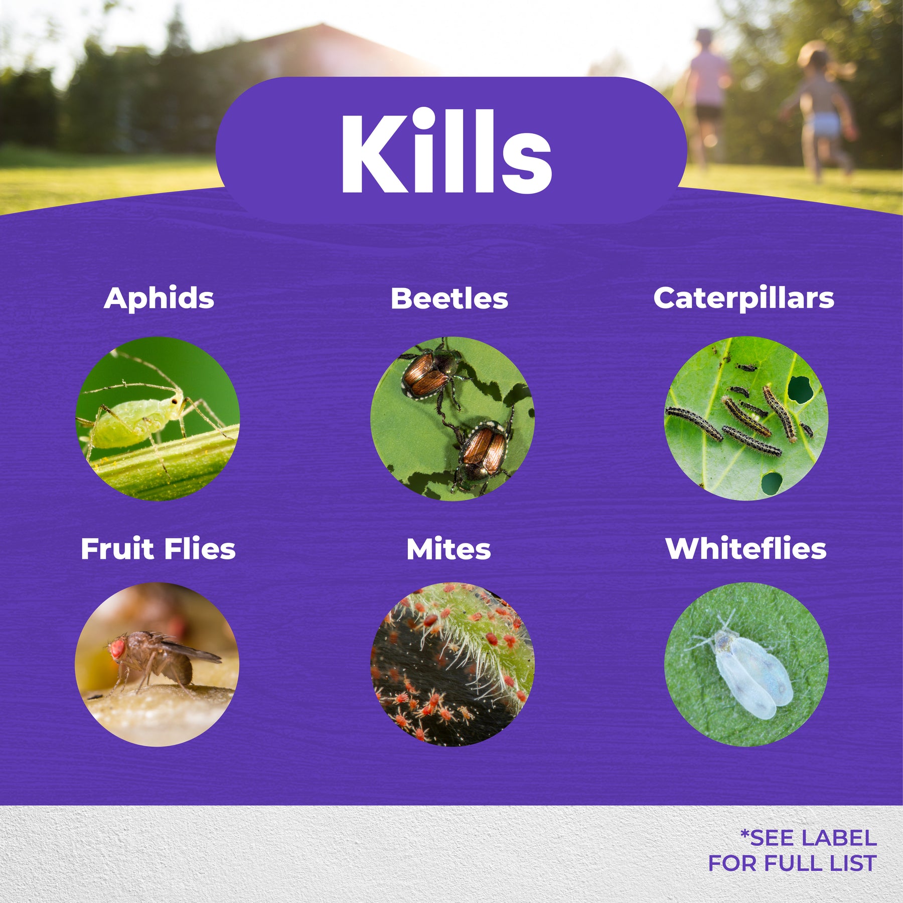 Broad Pest List: Kills listed pests like aphids, beetles, caterpillars, fruit flies, mites, and whiteflies