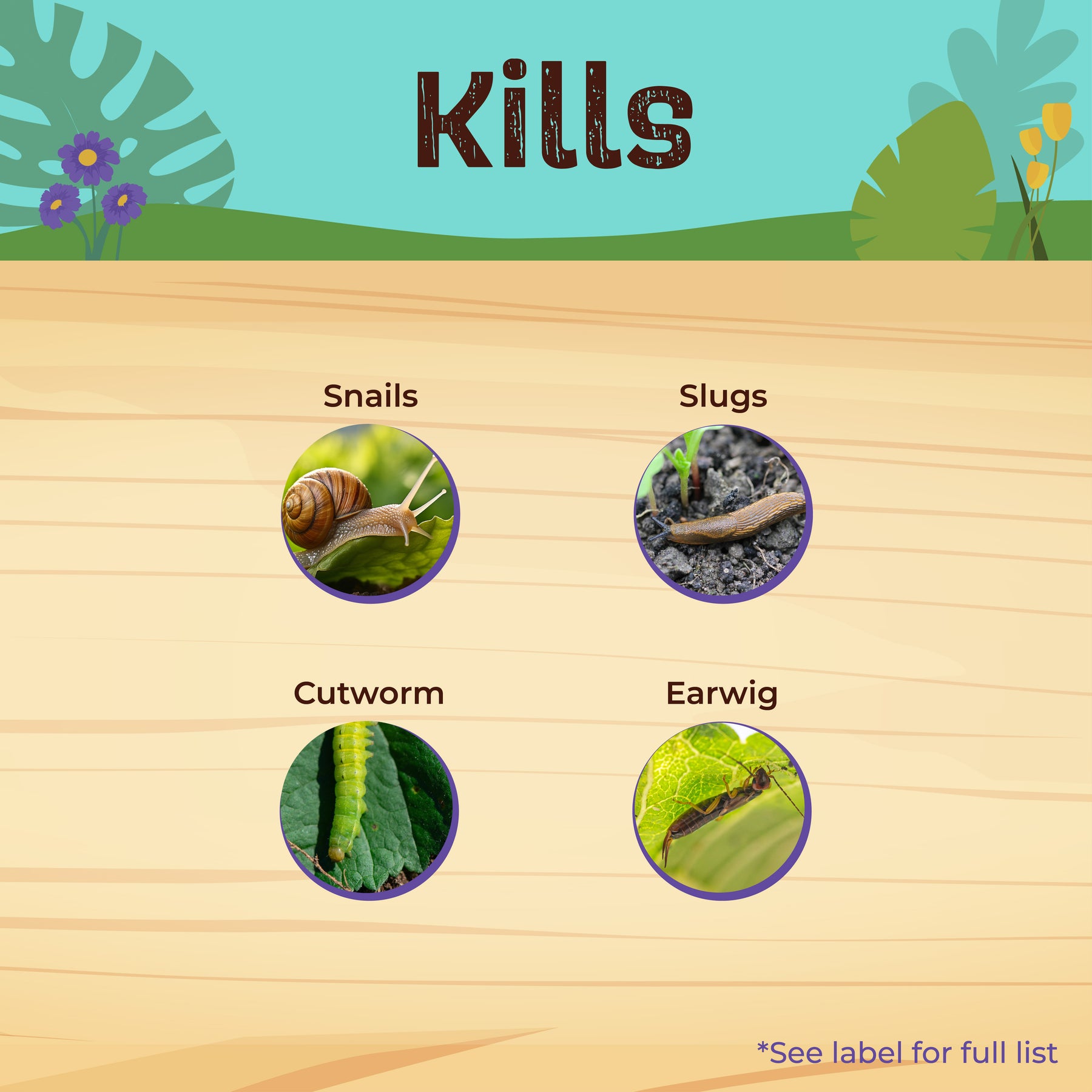 • Broad Pest Control: Attracts and kills slugs, snails, earwigs, cutworms and more crawling insects