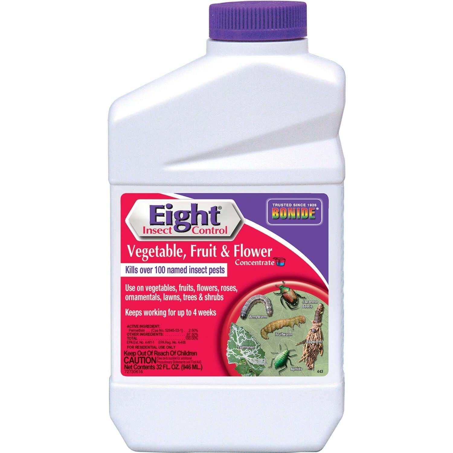 Bonide Eight Vegetable, Fruit & Flower Concentrate delivers fast-acting, residual insect control for gardens and landscapes. Formulated for use on vegetables, fruits, flowers, shrubs, trees, and lawns, it kills over 100 listed insects and keeps protecting for weeks.