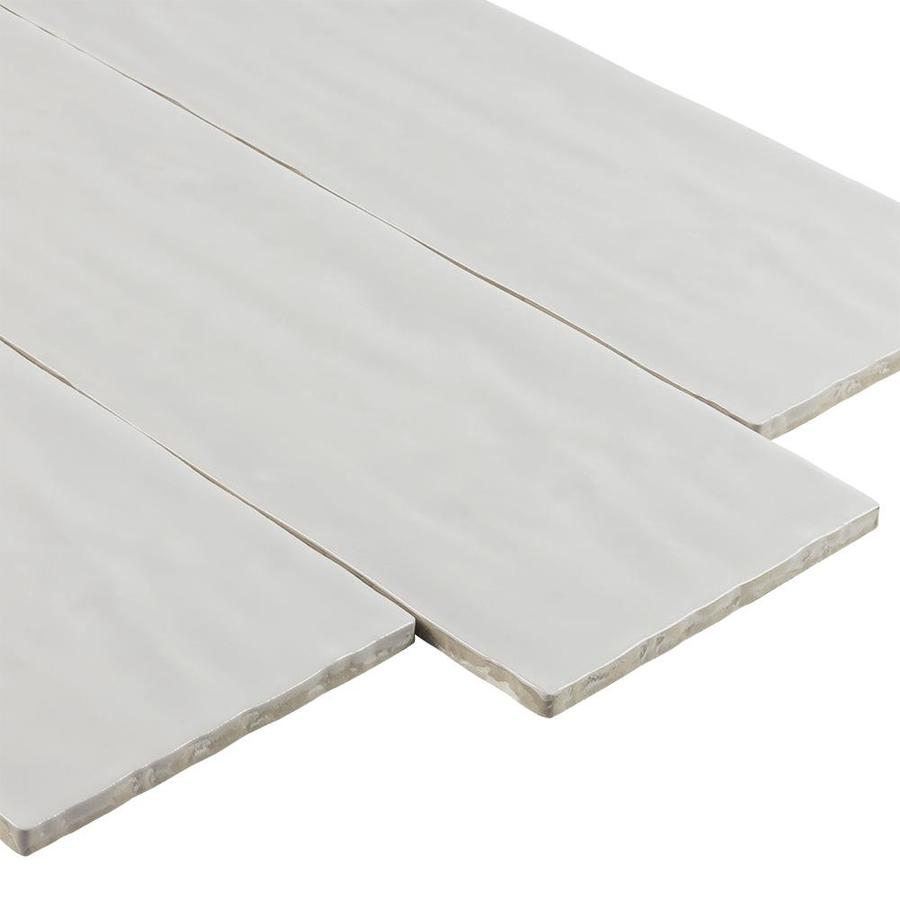 Glazed hand crafted ceramic subway field tile is dense, durable and resistant to moisture With variations of light grey in color and handcrafted edges this tile is perfectly suited for today's refined interpretation of trends and style The Boutique Collection offers a variety of sizes of handcrafted rectangular field tile with matching trim pieces to create time tested focal points Impervious tile does not absorb water and is safe for use in settings with high-moisture Suitable for interior residential and commercial walls when proper installation methods are followed To help maintain a clean, beautiful surface, clean with a soft cloth or sponge with warm water or any non-abrasive mild detergent 4.84-in W x 13.78-in L x 8mm thick individual tile covers 0.46-sq ft This tile is suitable for use primarily on interior walls, such as kitchen and bathroom walls, fireplace exteriors, wet areas like shower walls, and are great for accent pieces For a uniform and well designed look we recommend using MAPEI silver sanded or unsanded grout