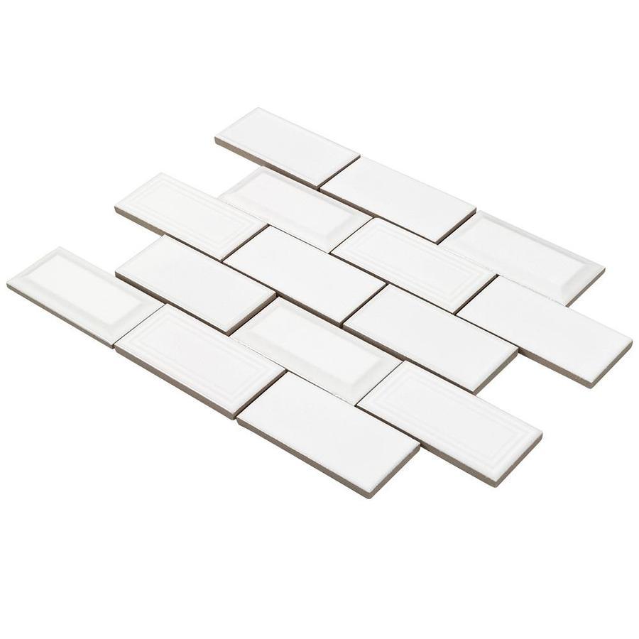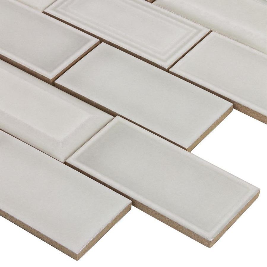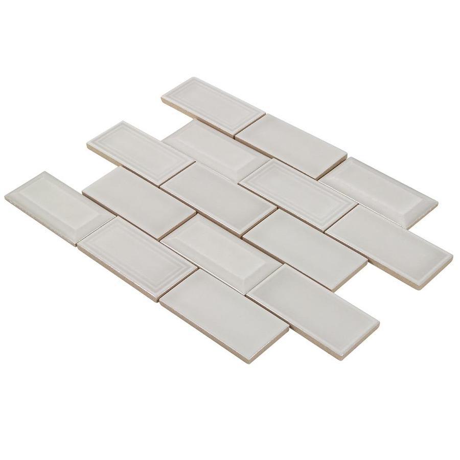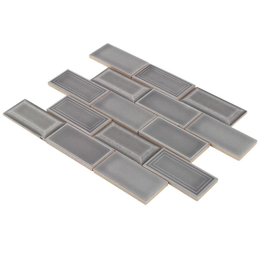 Glazed ceramic mosaic tile is dense, durable and resistant to moisture Light grey in color, with raised beveled edges and flat edges mixed together create an elegant and timeless look This three dimensional, rectangular subway pattern creates a timeless look featuring a detailed and handmade look Impervious tile doesn’t absorb water and is safe for use in settings with high-moisture Suitable for interior residential and commercial walls when proper installation methods are followed To help maintain a clean, beautiful surface, clean with a soft cloth or sponge with warm water or any non-abrasive mild detergent 10.63-in W x 12.83-in L x 9mm thick individual tile covers 0.95-sq ft This tile is suitable for use primarily on interior walls, such as kitchen and bathroom walls, fireplace exteriors, wet areas like shower walls, and are great for accent pieces For a uniform and well designed look we recommend using MAPEI silver unsanded grout