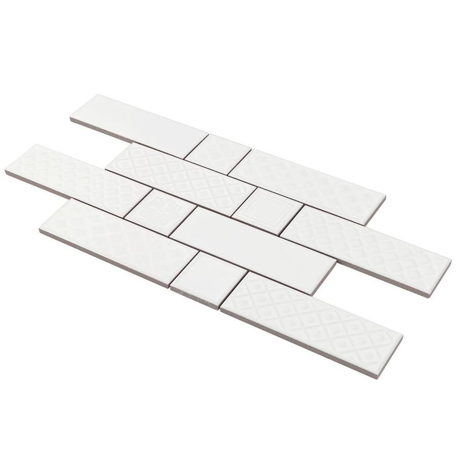 Boutique Ceramic Boutique White 9-in x 15-in Glazed Ceramic Brick Mosaic Wall Tile