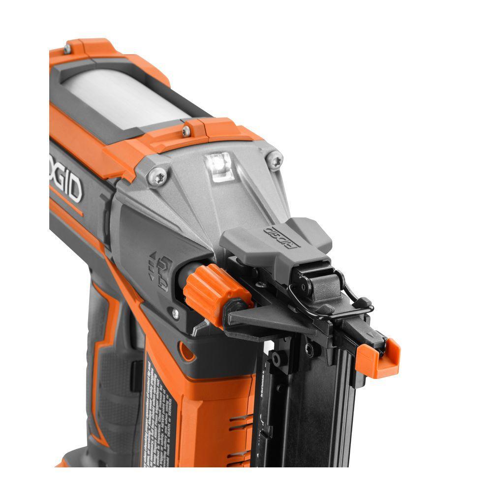 RIDGID introduces the 18-Volt Cordless Brushless HYPERDRIVE 18-Gauge 2-1/8 in. Brad Nailer (Tool-Only) Belt Clip, Bag, and Sample Nails. RIDGID HYPERDRIVE offers you all the power of a pneumatic nailer in a cordless tool. With no compressor, no hose, and no gas cartridge, this 18-gauge brad nailer enables faster set-up and easier maneuvering on the job site, driving 18-gauge nails from 5/8 in. to 2-1/8 in. Best of all, this tool is confidently backed by the RIDGID Lifetime Service Agreement, providing FREE seals, FREE pistons, and FREE driver blades - For LIFE. The 18-Volt Lithium-Ion Cordless Brushless HYPERDRIVE 18-Gauge 2-1/8 in. Brad Nailer (Tool Only) includes sample nails, a belt clip, tool bag, and an operator's manual. Battery and charger sold separately.