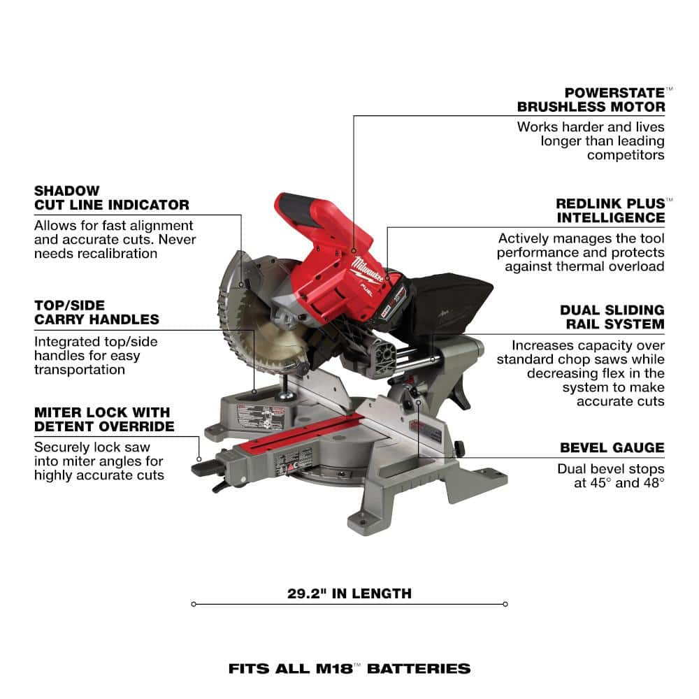 Milwaukee M18 FUEL 18-Volt Brushless 7-1/4 in. Cordless Dual-Bevel Sliding Compound Miter Saw with 18-Gauge Brad Nailer