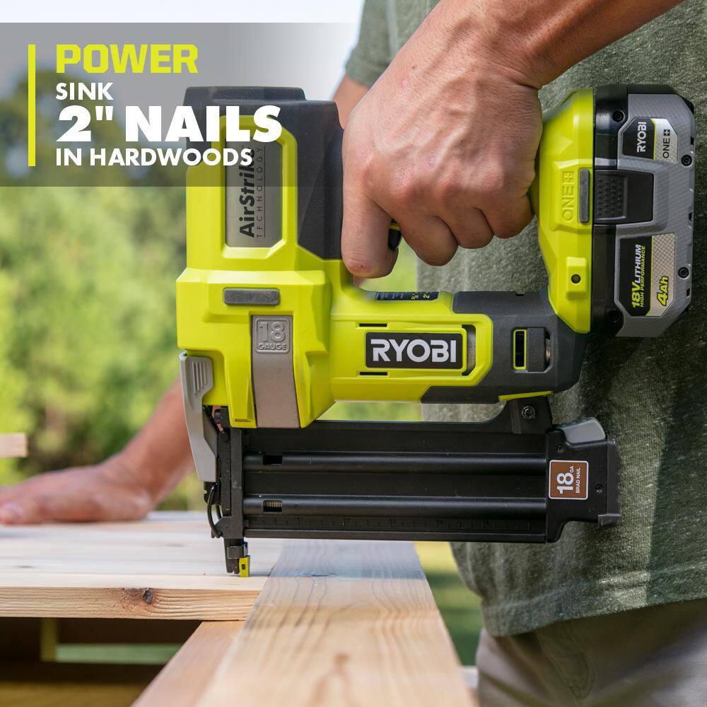 RYOBI ONE+ 18V 18-Gauge Cordless AirStrike Brad Nailer with Cordless 5 in. Random Orbit Sander