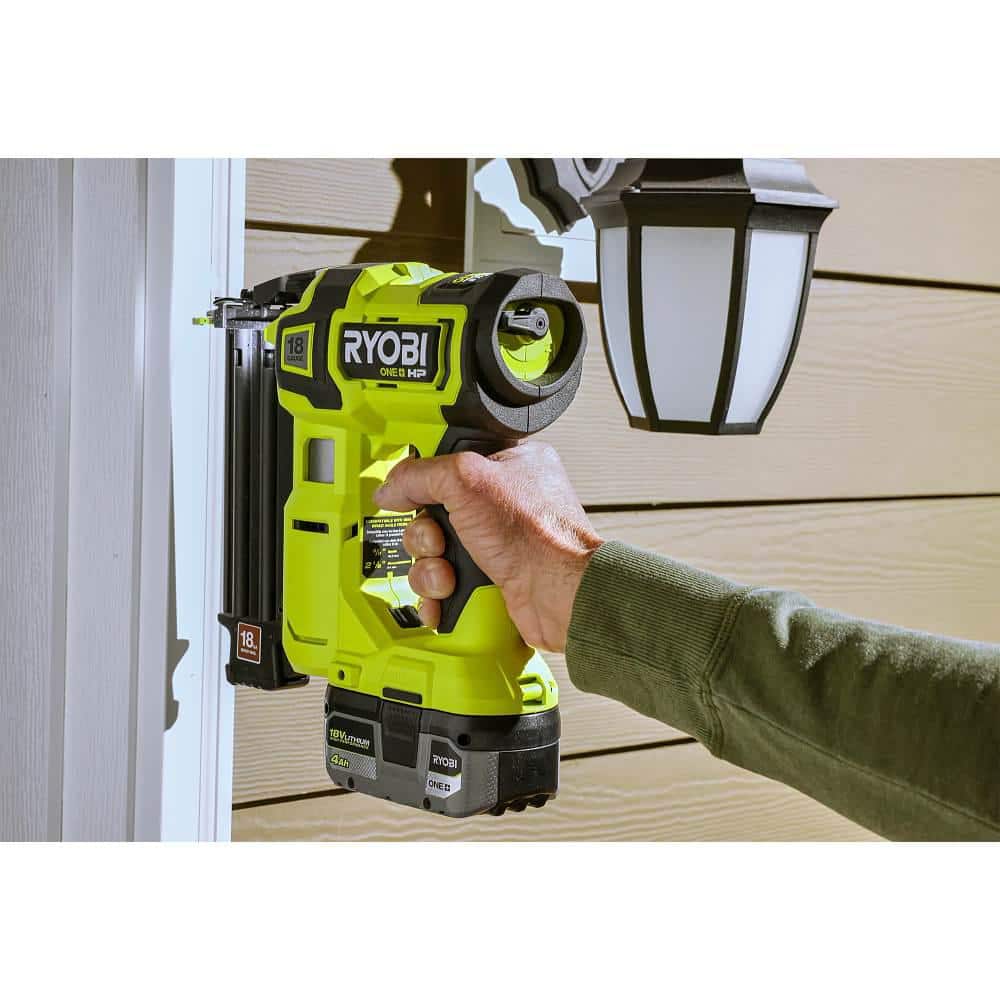 RYOBI ONE+ HP 18V 18-Gauge Brushless Cordless AirStrike Brad Nailer Kit with 4.0 Ah Battery and Charger