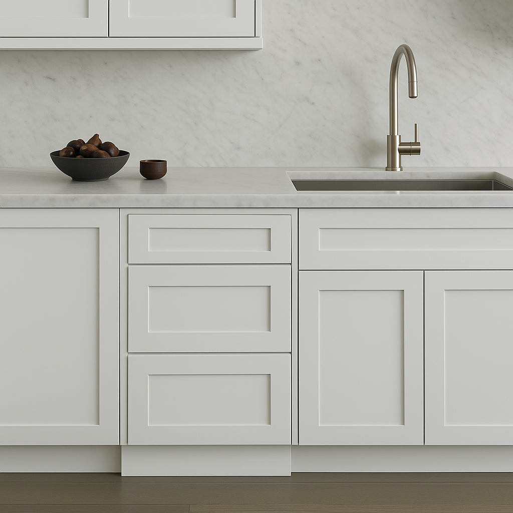 The Bremen Cabinetry Shaker Base Drawer Cabinet transforms your kitchen into a haven of style and functionality. Its clean white finish and shaker design exude timeless elegance, while the soft-close drawers ensure a seamless user experience. Pair it with natural wood accents for a warm, inviting atmosphere, or complement it with sleek stainless steel appliances for a modern touch. This cabinet is not just a storage solution; it's a statement piece that enhances the heart of your home.