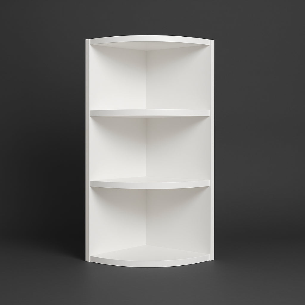 The Bremen Cabinetry Shaker Wall End Open Shelf Cabinet combines modern design with functionality, featuring durable plywood construction and a clean white finish. Perfect for kitchens, bathrooms, or other spaces, it offers ample storage with its full-depth shelves.
