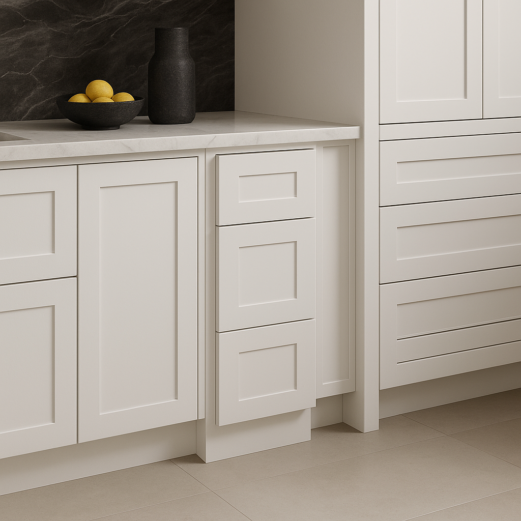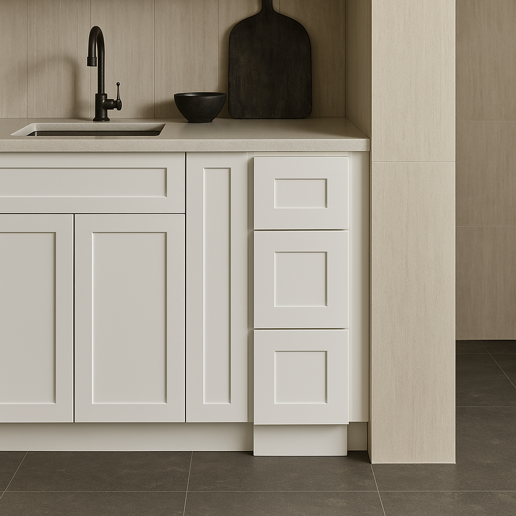 The Bremen Cabinetry Shaker Base Drawer Cabinet combines elegant design with practical storage solutions. Featuring soft-close drawers and a durable plywood construction, this cabinet is perfect for enhancing your kitchen's functionality and style.