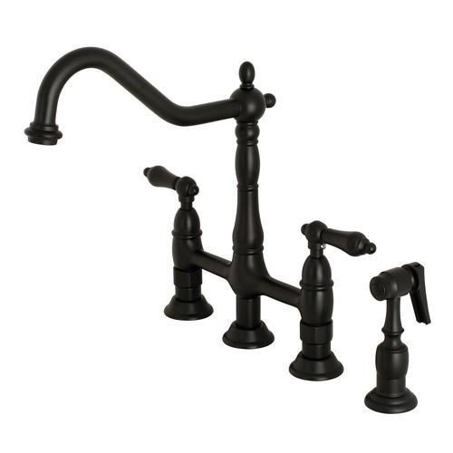 Kingston Brass Heritage Matte Black 2-Handle Deck-Mount Bridge Handle Kitchen Faucet