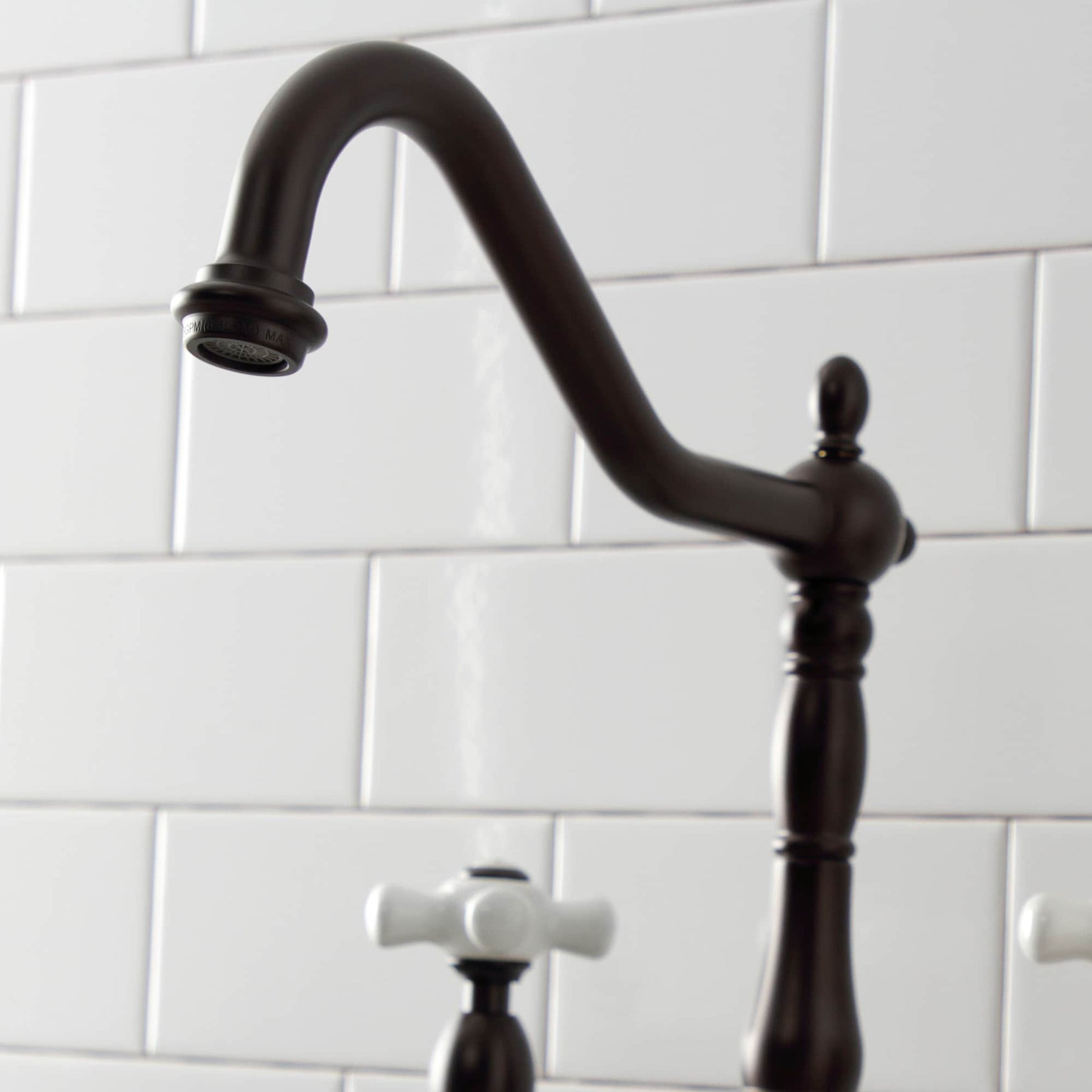 This bridge faucet brings a romantic, old-world silhouette to the kitchen, its oil-rubbed bronze patina playing beautifully against crisp tile and stone. The porcelain cross handles are a refined nod to vintage bathhouses, offering tactile delight and timeless appeal. Style it with unlacquered brass accents and handmade ceramics to amplify its artisanal mood. It’s a quietly luxurious centerpiece that anchors the room with character and grace.