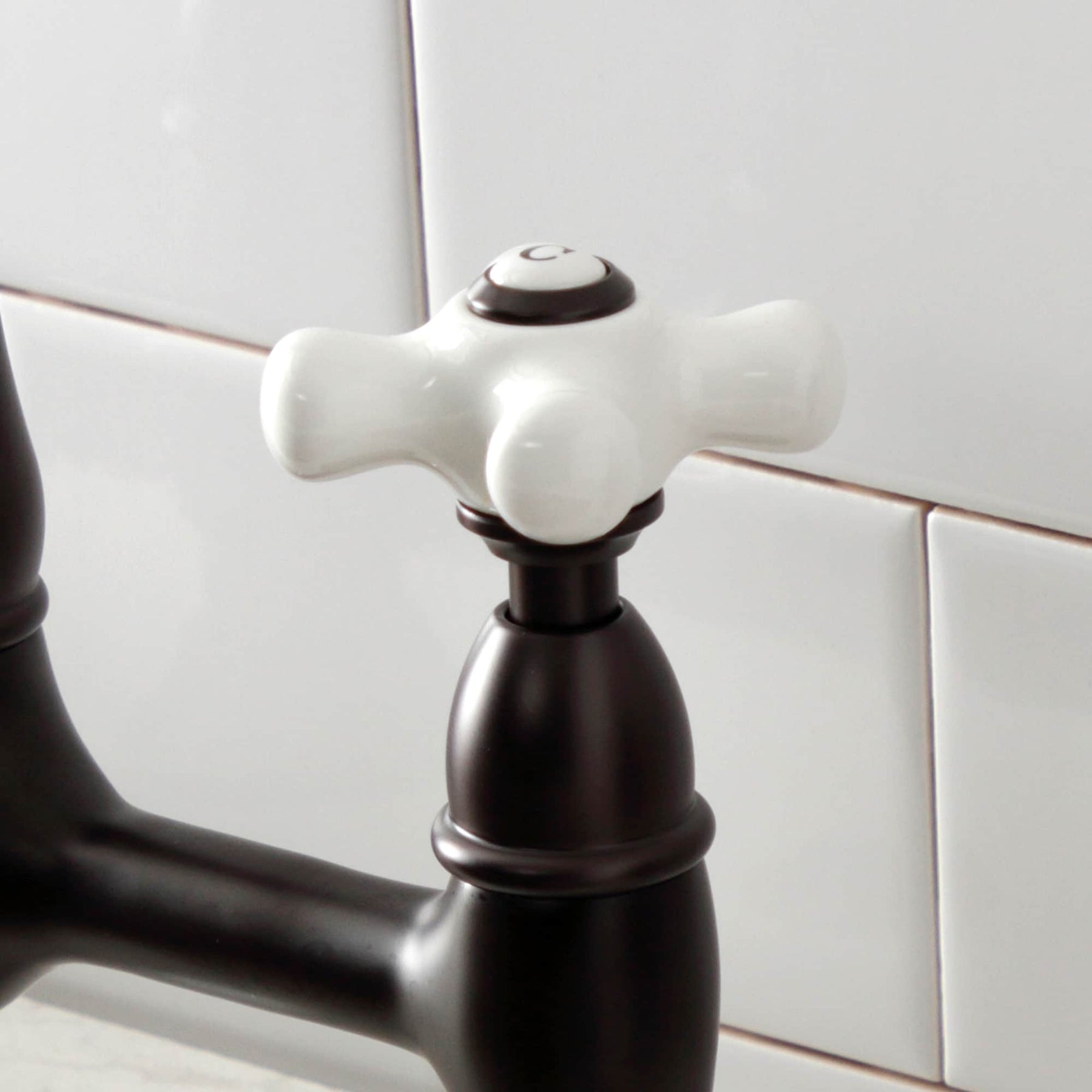 Elements of Design Oil-Rubbed Bronze 2-Handle Deck-Mount Bridge Kitchen Faucet with Porcelain Cross Handles