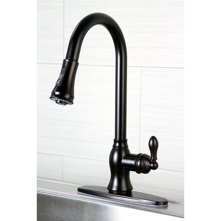 Kingston Brass American Classic Oil-Rubbed Bronze 1-Handle Deck-Mount Pull-Down Handle Kitchen Faucet (Deck Plate Included)