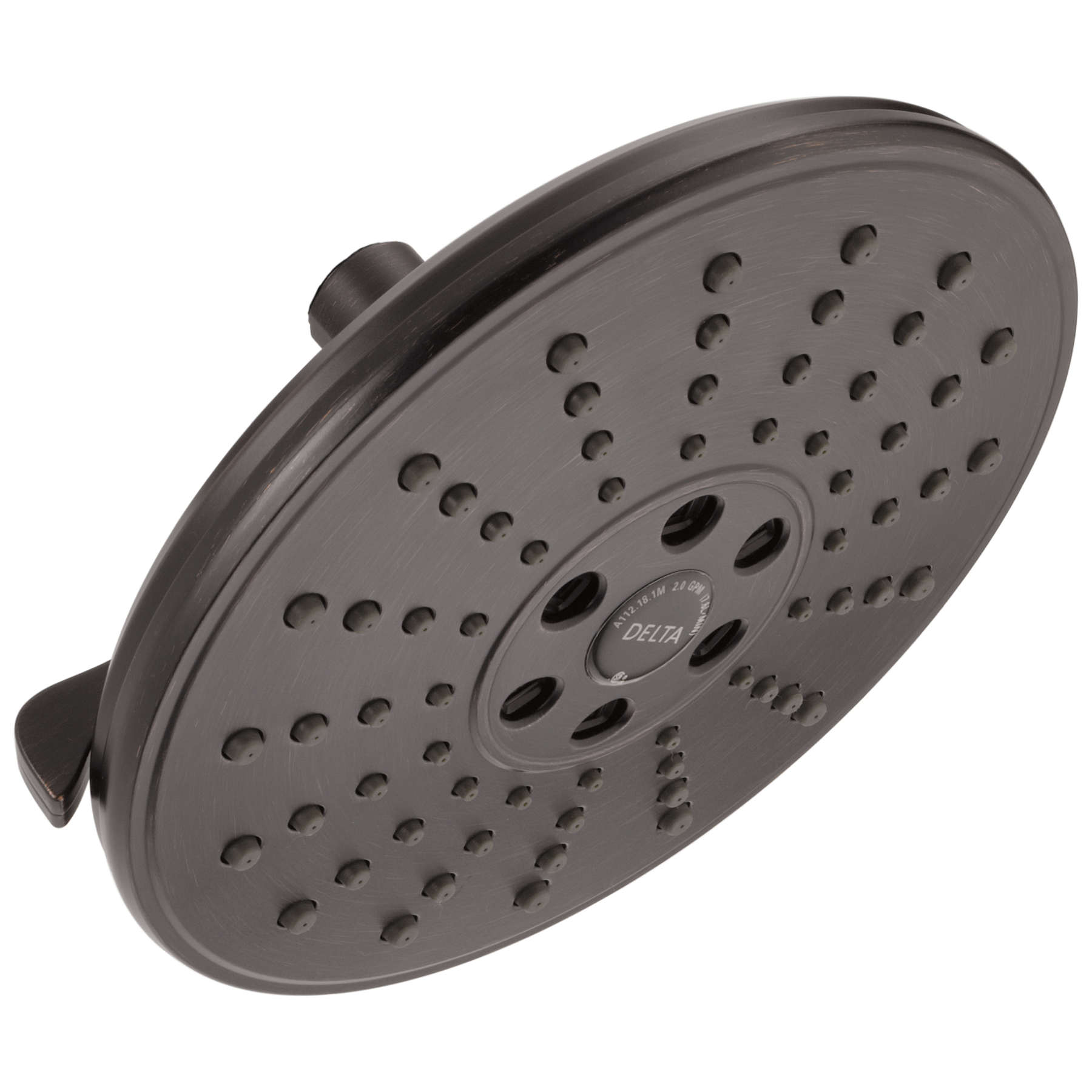 Delta 3-Spray 7.7-in H2Okinetic Fixed Rain Shower Head, Wall-Mount, Venetian Bronze