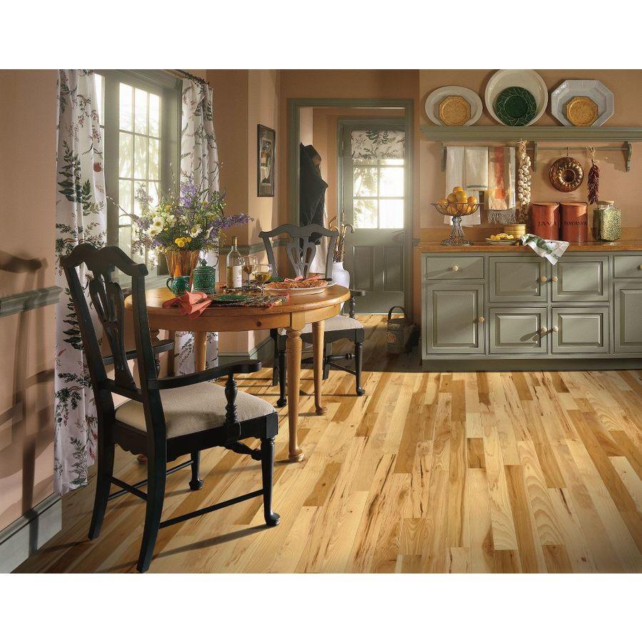 Solid hickory planks in a Country Natural hue bring durable, timeless warmth to any room. The 3.25-inch wide boards feature a smooth traditional finish with medium gloss and micro-beveled edges for a classic look. Each carton covers 22 sq. ft., ideal for premium, long-lasting installations.