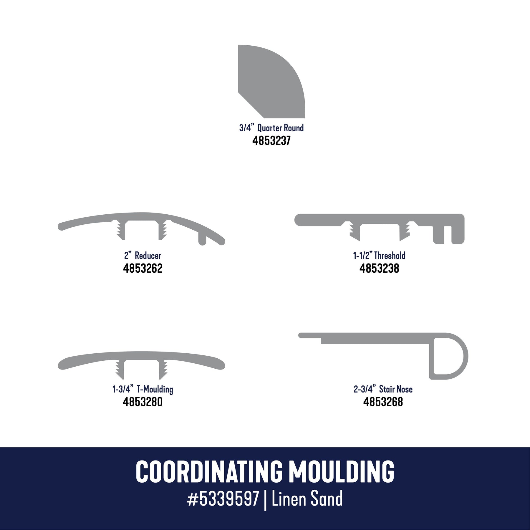 Complete your flooring with this Linen Sand T-molding for a durable, water-resistant transition that looks custom-finished.