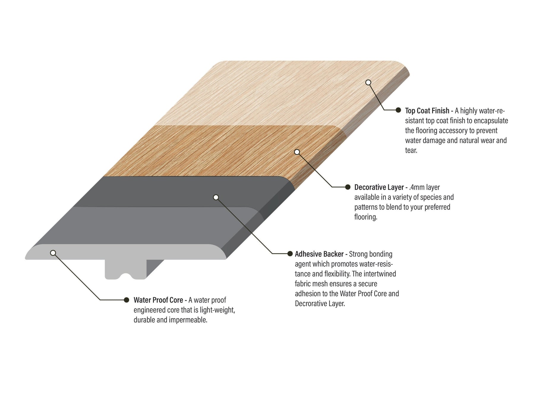 Enhance your flooring transition with the Bruce Forest Rain Serene Neutral T-moulding, crafted from durable wood veneer with a waterproof vinyl core. This sleek trim piece not only complements your Bruce Forest Rain floor but also offers superior water resistance and durability, making it ideal for humid environments.