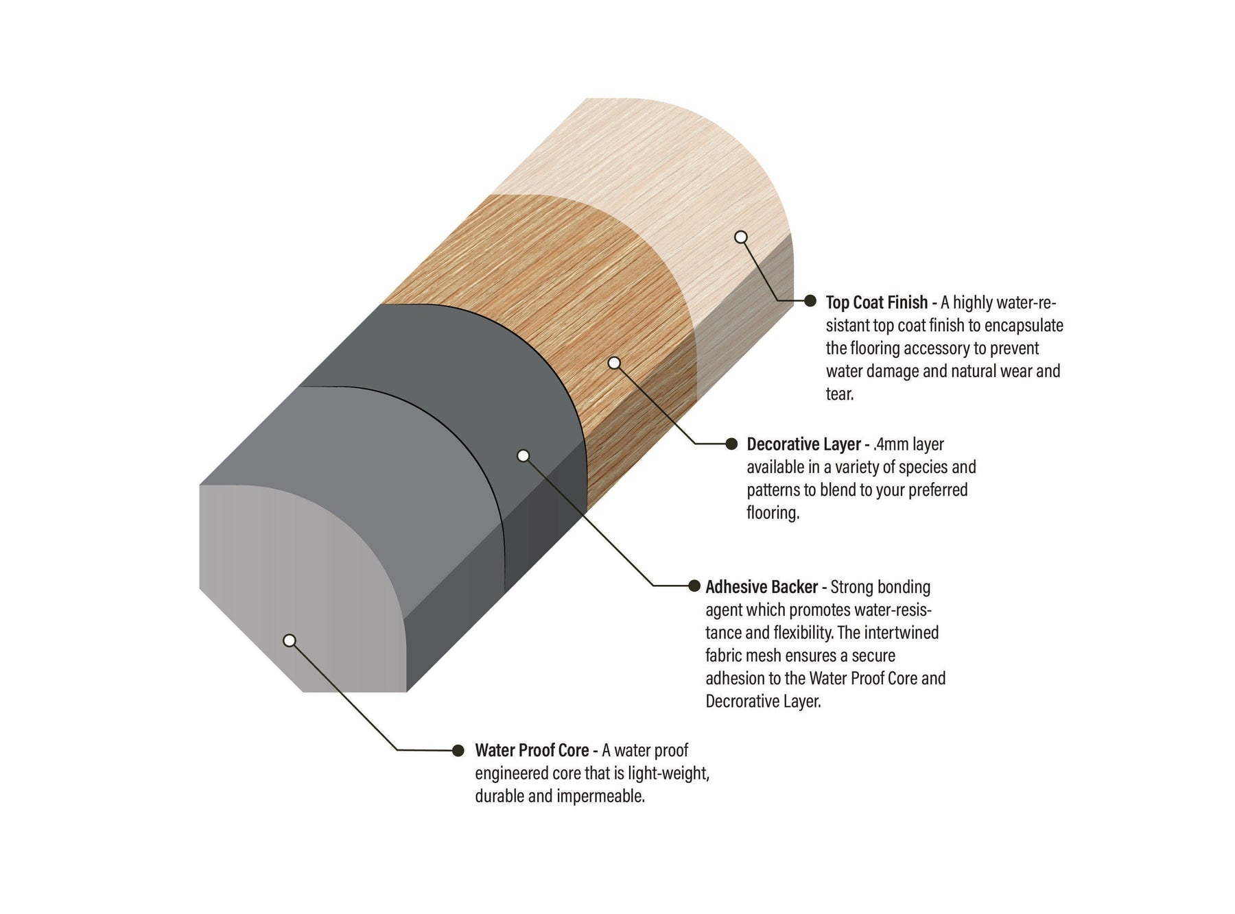 • Durable Composition: Wood veneer with vinyl core for strength and longevity.