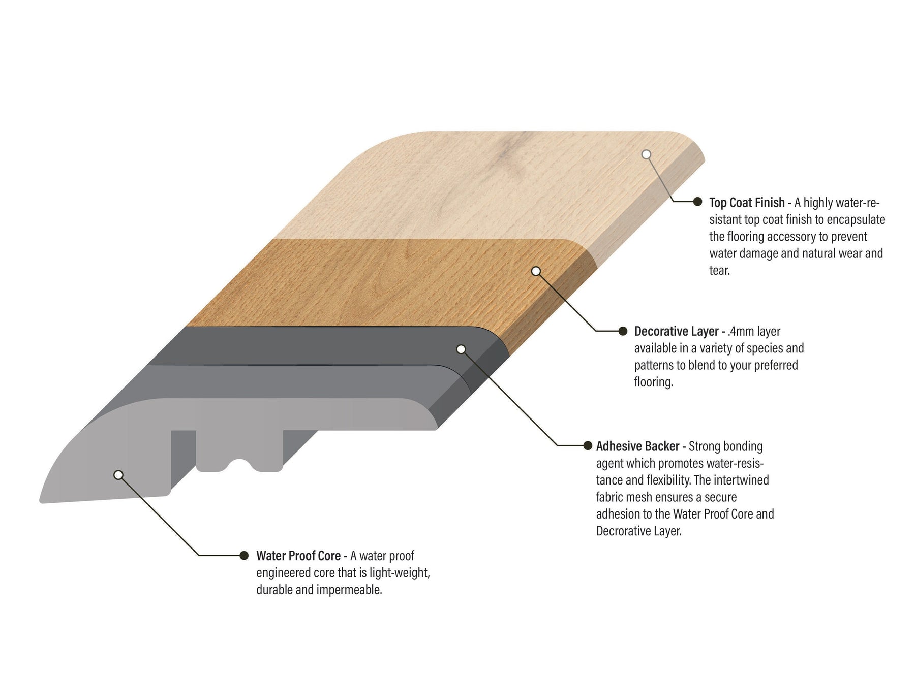 A: The reducer is constructed with a water-resistant top coat and an engineered waterproof core, making it ideal for areas exposed to moisture.