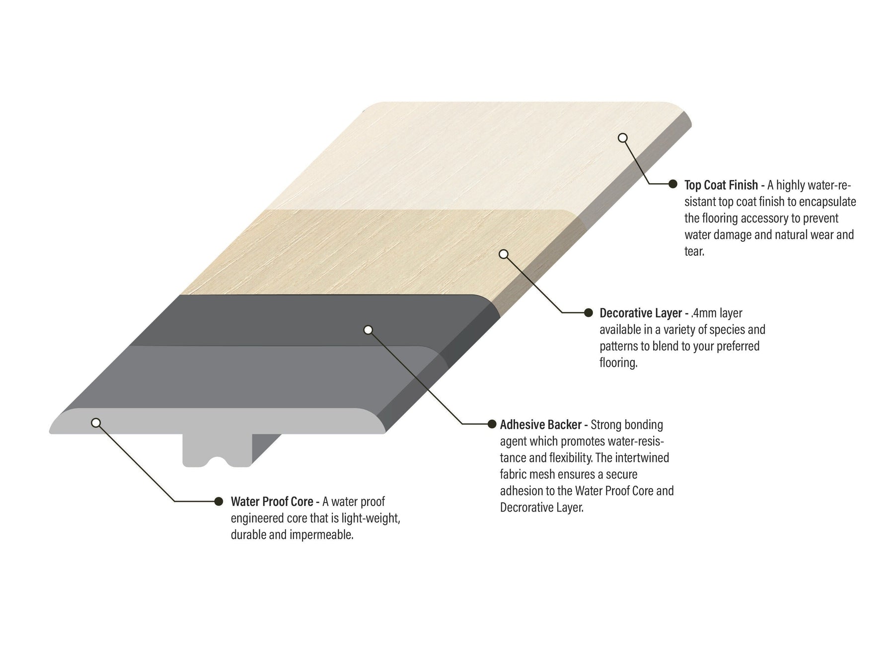 - Finishing Touch: Add a perfect finishing touch to your flooring with this coordinating water-resistant trim.
